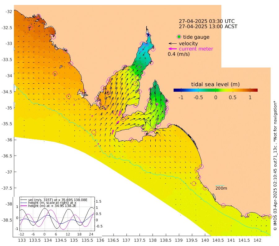 0cm/s 91T +10cm/s rms + 5cm/s 114T. SAM1DS 520m 6cm/s 30T +13cm/s rms + 5cm/s -36T. SAM2CP 100m 6cm/s 38T +21cm/s rms + 18cm/s 142T. SAM3MS 168m 2cm/s -60T +22cm/s rms + 0cm/s -30T. SAM4CY 117m 4cm/s -56T +23cm/s rms + 2cm/s 99T. SAM5CB 94m 19cm/s 49T +8cm/s rms + 3cm/s -172T. SAM6IS 83m 3cm/s 49T +11cm/s rms + 7cm/s 150T. SAM7DS 519m 27cm/s 23T +10cm/s rms + 2cm/s 87T. SAM8SG 47m 23cm/s 14T +20cm/s rms + 12cm/s -168T. NRSKAI 101m 35cm Warrnambool 34cm Port Fairy 36cm Portland 39cm Port Macdonnell 38cm Beachport 40cm Cape Rabelais (off) 41cm Robe 43cm Cape Jaffa 43cm Kingston 45cm Victor Harbor 42cm Vivonne Bay 24cm Kingscote 20cm American River 33cm Penneshaw 19cm Cape Jervis 7cm Second Valley 7cm Port Noarlunga 7cm Port Stanvac 3cm Brighton 5cm Glenelg -2cm Port Adelaide (Outer Harbor) -32cm Angus Inlet (Garden Island) -3cm Ardrossan 27cm Port Vincent 22cm Port Giles 48cm Stenhouse Bay 47cm Althorpe Island 44cm Pondalowie Bay 48cm Point Turton 43cm Port Victoria 37cm Cape Elizabeth 34cm Tiparra Reef Light 7cm Wallaroo 1cm Middle Bank -21cm Port Broughton -75cm Port Pirie -99cm Red Cliff Point (Beacon 5) -65cm Port Bonython -61cm Whyalla -46cm Western Shoal Beacon 9cm Franklin Harbor 43cm Franklin Harbor Entrance Beacon 56cm Arno Bay 68cm Port Neill 65cm Cape Hardy 68cm Tumby Bay 68cm Reevesby Island 71cm Port Lincoln 62cm Taylors Landing 50cm Whalers Bay 53cm Wedge Island Mooring 44cm Shelf Edge Mooring 61cm Coffin Bay Entrance Beacon 49cm Greenly Island 62cm Elliston 59cm Pearson Island 53cm Venus Bay 91cm Blanche Port (Streaky Bay) 89cm Thevenard 73cm St Francis Island