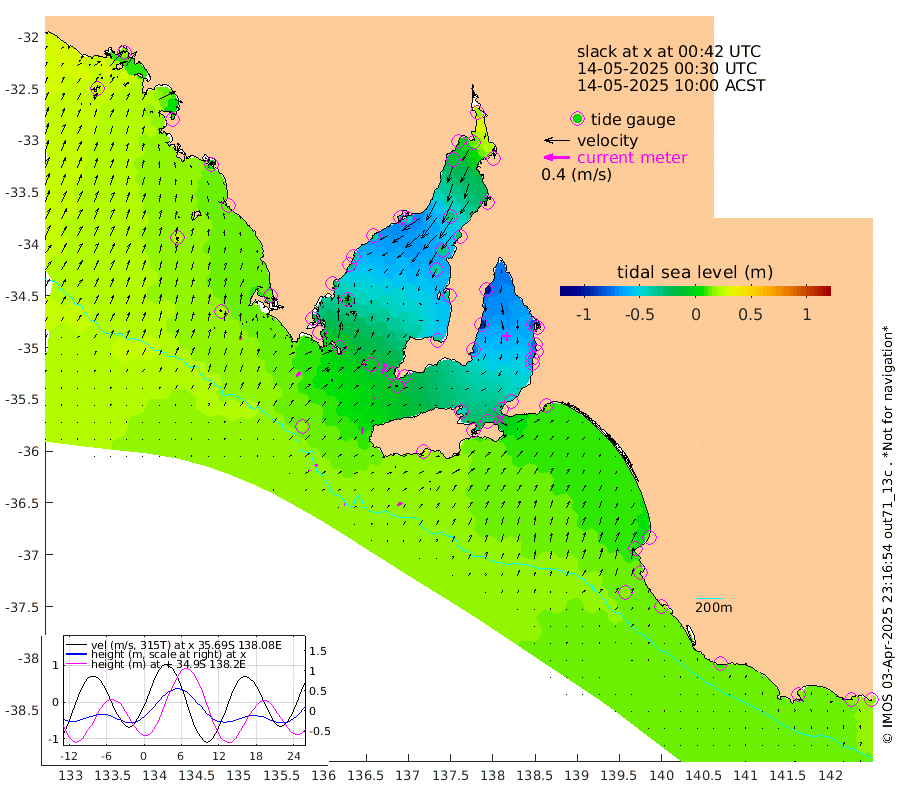1cm/s 92T +10cm/s rms + 5cm/s 114T. SAM1DS 520m 8cm/s 46T +13cm/s rms + 5cm/s -36T. SAM2CP 100m 4cm/s 31T +21cm/s rms + 18cm/s 142T. SAM3MS 168m 8cm/s 56T +22cm/s rms + 0cm/s -30T. SAM4CY 117m 7cm/s 11T +23cm/s rms + 2cm/s 99T. SAM5CB 94m 3cm/s -31T +8cm/s rms + 3cm/s -172T. SAM6IS 83m 2cm/s -14T +11cm/s rms + 7cm/s 150T. SAM7DS 519m 16cm/s 21T +10cm/s rms + 2cm/s 87T. SAM8SG 47m 9cm/s 10T +20cm/s rms + 12cm/s -168T. NRSKAI 101m 17cm Warrnambool 16cm Port Fairy 16cm Portland 10cm Port Macdonnell 18cm Beachport 18cm Cape Rabelais (off) 14cm Robe 9cm Cape Jaffa 11cm Kingston 12cm Victor Harbor 24cm Vivonne Bay -44cm Kingscote -35cm American River -30cm Penneshaw -31cm Cape Jervis -48cm Second Valley -67cm Port Noarlunga -70cm Port Stanvac -72cm Brighton -76cm Glenelg -82cm Port Adelaide (Outer Harbor) -64cm Angus Inlet (Garden Island) -101cm Ardrossan -94cm Port Vincent -74cm Port Giles -12cm Stenhouse Bay -11cm Althorpe Island -8cm Pondalowie Bay -34cm Point Turton -37cm Port Victoria -41cm Cape Elizabeth -33cm Tiparra Reef Light -30cm Wallaroo -30cm Middle Bank -16cm Port Broughton 16cm Port Pirie 18cm Red Cliff Point (Beacon 5) 13cm Port Bonython -1cm Whyalla -9cm Western Shoal Beacon -52cm Franklin Harbor -45cm Franklin Harbor Entrance Beacon -36cm Arno Bay -37cm Port Neill -29cm Cape Hardy -24cm Tumby Bay -18cm Reevesby Island -13cm Port Lincoln 2cm Taylors Landing -25cm Whalers Bay -4cm Wedge Island Mooring 18cm Shelf Edge Mooring 13cm Coffin Bay Entrance Beacon 19cm Greenly Island 15cm Elliston 24cm Pearson Island 2cm Venus Bay 11cm Blanche Port (Streaky Bay) 16cm Thevenard 25cm St Francis Island
