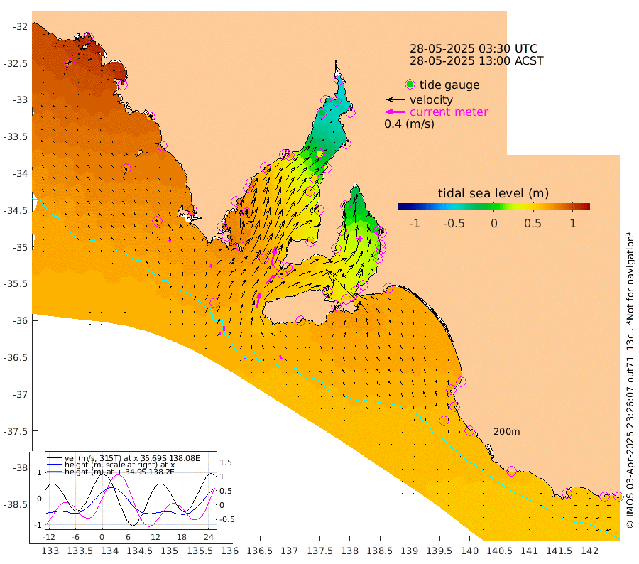 1cm/s -6T +10cm/s rms + 5cm/s 114T. SAM1DS 520m 8cm/s 19T +13cm/s rms + 5cm/s -36T. SAM2CP 100m 10cm/s -1T +21cm/s rms + 18cm/s 142T. SAM3MS 168m 9cm/s -28T +22cm/s rms + 0cm/s -30T. SAM4CY 117m 5cm/s -40T +23cm/s rms + 2cm/s 99T. SAM5CB 94m 26cm/s 46T +8cm/s rms + 3cm/s -172T. SAM6IS 83m 4cm/s -2T +11cm/s rms + 7cm/s 150T. SAM7DS 519m 41cm/s 13T +10cm/s rms + 2cm/s 87T. SAM8SG 47m 33cm/s 11T +20cm/s rms + 12cm/s -168T. NRSKAI 101m 57cm Warrnambool 55cm Port Fairy 58cm Portland 57cm Port Macdonnell 59cm Beachport 61cm Cape Rabelais (off) 61cm Robe 64cm Cape Jaffa 61cm Kingston 66cm Victor Harbor 62cm Vivonne Bay 39cm Kingscote 32cm American River 49cm Penneshaw 32cm Cape Jervis 21cm Second Valley 16cm Port Noarlunga 15cm Port Stanvac 12cm Brighton 12cm Glenelg 5cm Port Adelaide (Outer Harbor) -23cm Angus Inlet (Garden Island) 1cm Ardrossan 27cm Port Vincent 30cm Port Giles 61cm Stenhouse Bay 61cm Althorpe Island 56cm Pondalowie Bay 60cm Point Turton 55cm Port Victoria 53cm Cape Elizabeth 48cm Tiparra Reef Light 28cm Wallaroo 27cm Middle Bank -19cm Port Broughton -37cm Port Pirie -55cm Red Cliff Point (Beacon 5) -31cm Port Bonython -24cm Whyalla -14cm Western Shoal Beacon 28cm Franklin Harbor 65cm Franklin Harbor Entrance Beacon 74cm Arno Bay 84cm Port Neill 82cm Cape Hardy 86cm Tumby Bay 82cm Reevesby Island 87cm Port Lincoln 81cm Taylors Landing 63cm Whalers Bay 70cm Wedge Island Mooring 64cm Shelf Edge Mooring 77cm Coffin Bay Entrance Beacon 68cm Greenly Island 79cm Elliston 73cm Pearson Island 62cm Venus Bay 101cm Blanche Port (Streaky Bay) 99cm Thevenard 84cm St Francis Island