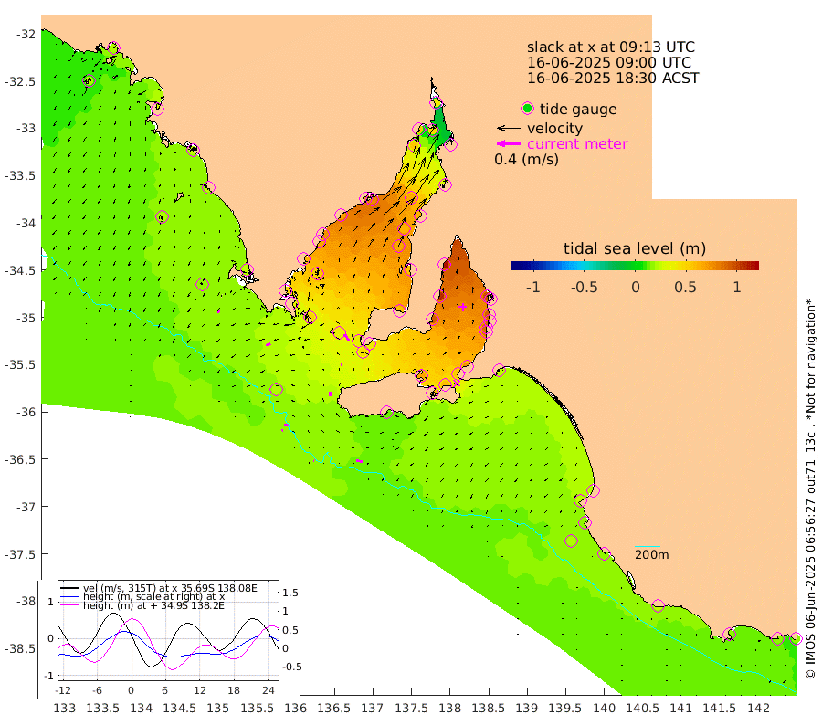 1cm/s -62T +10cm/s rms + 5cm/s 114T. SAM1DS 520m 8cm/s -112T +13cm/s rms + 5cm/s -36T. SAM2CP 100m 6cm/s -70T +21cm/s rms + 18cm/s 142T. SAM3MS 168m 11cm/s -76T +22cm/s rms + 0cm/s -30T. SAM4CY 117m 4cm/s -145T +23cm/s rms + 2cm/s 99T. SAM5CB 94m 2cm/s -89T +8cm/s rms + 3cm/s -172T. SAM6IS 83m 2cm/s -70T +11cm/s rms + 7cm/s 150T. SAM7DS 519m 14cm/s -33T +10cm/s rms + 2cm/s 87T. SAM8SG 47m 6cm/s -2T +20cm/s rms + 12cm/s -168T. NRSKAI 101m 16cm Warrnambool 17cm Port Fairy 17cm Portland 25cm Port Macdonnell 17cm Beachport 19cm Cape Rabelais (off) 18cm Robe 24cm Cape Jaffa 22cm Kingston 25cm Victor Harbor 13cm Vivonne Bay 65cm Kingscote 60cm American River 58cm Penneshaw 56cm Cape Jervis 73cm Second Valley 85cm Port Noarlunga 87cm Port Stanvac 89cm Brighton 93cm Glenelg 97cm Port Adelaide (Outer Harbor) 86cm Angus Inlet (Garden Island) 114cm Ardrossan 105cm Port Vincent 90cm Port Giles 39cm Stenhouse Bay 43cm Althorpe Island 34cm Pondalowie Bay 58cm Point Turton 59cm Port Victoria 64cm Cape Elizabeth 62cm Tiparra Reef Light 62cm Wallaroo 67cm Middle Bank 29cm Port Broughton 36cm Port Pirie 39cm Red Cliff Point (Beacon 5) 46cm Port Bonython 54cm Whyalla 56cm Western Shoal Beacon 69cm Franklin Harbor 76cm Franklin Harbor Entrance Beacon 69cm Arno Bay 74cm Port Neill 65cm Cape Hardy 61cm Tumby Bay 50cm Reevesby Island 47cm Port Lincoln 34cm Taylors Landing 51cm Whalers Bay 37cm Wedge Island Mooring 20cm Shelf Edge Mooring 23cm Coffin Bay Entrance Beacon 16cm Greenly Island 23cm Elliston 20cm Pearson Island 24cm Venus Bay 27cm Blanche Port (Streaky Bay) 22cm Thevenard 19cm St Francis Island