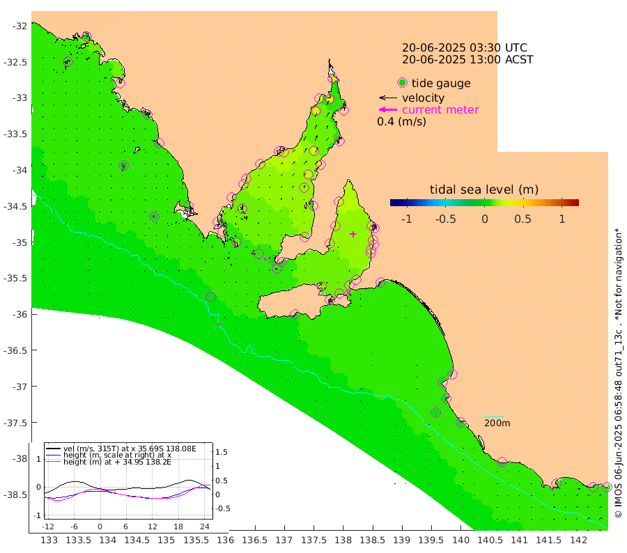 1cm/s -178T +10cm/s rms + 5cm/s 114T. SAM1DS 520m 4cm/s -100T +13cm/s rms + 5cm/s -36T. SAM2CP 100m 3cm/s -35T +21cm/s rms + 18cm/s 142T. SAM3MS 168m 2cm/s -22T +22cm/s rms + 0cm/s -30T. SAM4CY 117m 1cm/s -153T +23cm/s rms + 2cm/s 99T. SAM5CB 94m 1cm/s -38T +8cm/s rms + 3cm/s -172T. SAM6IS 83m 1cm/s -43T +11cm/s rms + 7cm/s 150T. SAM7DS 519m 6cm/s -45T +10cm/s rms + 2cm/s 87T. SAM8SG 47m 2cm/s -24T +20cm/s rms + 12cm/s -168T. NRSKAI 101m 10cm Warrnambool 8cm Port Fairy 8cm Portland 4cm Port Macdonnell 6cm Beachport 6cm Cape Rabelais (off) 6cm Robe 6cm Cape Jaffa 7cm Kingston 9cm Victor Harbor 5cm Vivonne Bay 18cm Kingscote 16cm American River 12cm Penneshaw 16cm Cape Jervis 18cm Second Valley 21cm Port Noarlunga 21cm Port Stanvac 21cm Brighton 20cm Glenelg 23cm Port Adelaide (Outer Harbor) 23cm Angus Inlet (Garden Island) 25cm Ardrossan 22cm Port Vincent 18cm Port Giles 6cm Stenhouse Bay 11cm Althorpe Island 6cm Pondalowie Bay 16cm Point Turton 11cm Port Victoria 17cm Cape Elizabeth 23cm Tiparra Reef Light 26cm Wallaroo 29cm Middle Bank 6cm Port Broughton 35cm Port Pirie 44cm Red Cliff Point (Beacon 5) 34cm Port Bonython 38cm Whyalla 40cm Western Shoal Beacon 27cm Franklin Harbor 26cm Franklin Harbor Entrance Beacon 19cm Arno Bay 19cm Port Neill 18cm Cape Hardy 15cm Tumby Bay 18cm Reevesby Island 11cm Port Lincoln 8cm Taylors Landing 13cm Whalers Bay 9cm Wedge Island Mooring 5cm Shelf Edge Mooring 8cm Coffin Bay Entrance Beacon 4cm Greenly Island 5cm Elliston 0cm Pearson Island 7cm Venus Bay 7cm Blanche Port (Streaky Bay) 6cm Thevenard 8cm St Francis Island