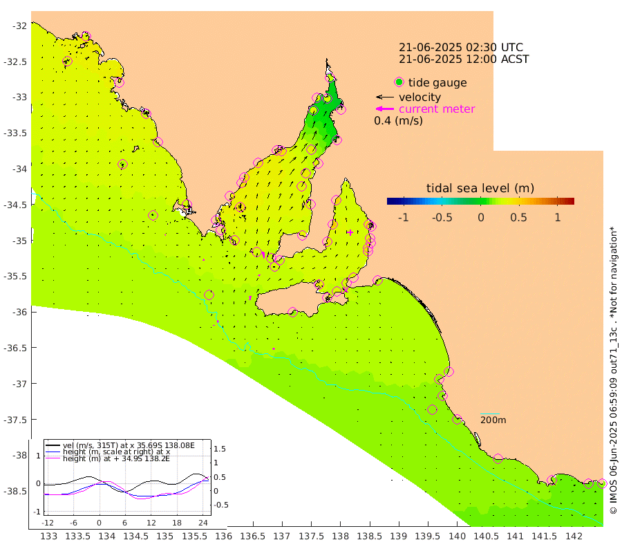1cm/s -169T +10cm/s rms + 5cm/s 114T. SAM1DS 520m 4cm/s -74T +13cm/s rms + 5cm/s -36T. SAM2CP 100m 4cm/s -14T +21cm/s rms + 18cm/s 142T. SAM3MS 168m 4cm/s -40T +22cm/s rms + 0cm/s -30T. SAM4CY 117m 2cm/s -100T +23cm/s rms + 2cm/s 99T. SAM5CB 94m 3cm/s 21T +8cm/s rms + 3cm/s -172T. SAM6IS 83m 2cm/s -14T +11cm/s rms + 7cm/s 150T. SAM7DS 519m 14cm/s -10T +10cm/s rms + 2cm/s 87T. SAM8SG 47m 8cm/s 6T +20cm/s rms + 12cm/s -168T. NRSKAI 101m 15cm Warrnambool 14cm Port Fairy 16cm Portland 15cm Port Macdonnell 17cm Beachport 18cm Cape Rabelais (off) 18cm Robe 18cm Cape Jaffa 18cm Kingston 23cm Victor Harbor 18cm Vivonne Bay 36cm Kingscote 34cm American River 31cm Penneshaw 31cm Cape Jervis 33cm Second Valley 40cm Port Noarlunga 41cm Port Stanvac 41cm Brighton 41cm Glenelg 43cm Port Adelaide (Outer Harbor) 37cm Angus Inlet (Garden Island) 49cm Ardrossan 53cm Port Vincent 42cm Port Giles 25cm Stenhouse Bay 29cm Althorpe Island 23cm Pondalowie Bay 34cm Point Turton 31cm Port Victoria 34cm Cape Elizabeth 39cm Tiparra Reef Light 37cm Wallaroo 38cm Middle Bank 6cm Port Broughton 23cm Port Pirie 23cm Red Cliff Point (Beacon 5) 28cm Port Bonython 32cm Whyalla 37cm Western Shoal Beacon 35cm Franklin Harbor 45cm Franklin Harbor Entrance Beacon 43cm Arno Bay 45cm Port Neill 42cm Cape Hardy 40cm Tumby Bay 43cm Reevesby Island 35cm Port Lincoln 29cm Taylors Landing 33cm Whalers Bay 28cm Wedge Island Mooring 20cm Shelf Edge Mooring 27cm Coffin Bay Entrance Beacon 19cm Greenly Island 24cm Elliston 21cm Pearson Island 24cm Venus Bay 34cm Blanche Port (Streaky Bay) 33cm Thevenard 30cm St Francis Island