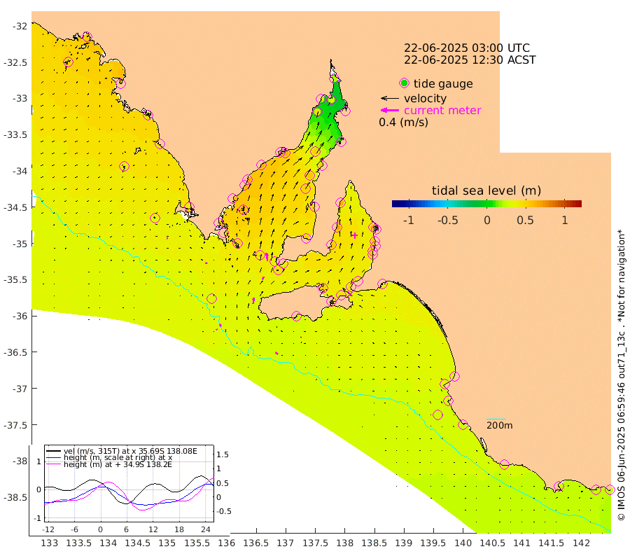 1cm/s -129T +10cm/s rms + 5cm/s 114T. SAM1DS 520m 4cm/s -72T +13cm/s rms + 5cm/s -36T. SAM2CP 100m 5cm/s -22T +21cm/s rms + 18cm/s 142T. SAM3MS 168m 7cm/s -55T +22cm/s rms + 0cm/s -30T. SAM4CY 117m 3cm/s -95T +23cm/s rms + 2cm/s 99T. SAM5CB 94m 7cm/s 36T +8cm/s rms + 3cm/s -172T. SAM6IS 83m 2cm/s -20T +11cm/s rms + 7cm/s 150T. SAM7DS 519m 19cm/s -7T +10cm/s rms + 2cm/s 87T. SAM8SG 47m 12cm/s 7T +20cm/s rms + 12cm/s -168T. NRSKAI 101m 26cm Warrnambool 25cm Port Fairy 27cm Portland 26cm Port Macdonnell 27cm Beachport 29cm Cape Rabelais (off) 29cm Robe 32cm Cape Jaffa 30cm Kingston 35cm Victor Harbor 28cm Vivonne Bay 50cm Kingscote 45cm American River 44cm Penneshaw 42cm Cape Jervis 44cm Second Valley 51cm Port Noarlunga 53cm Port Stanvac 53cm Brighton 53cm Glenelg 54cm Port Adelaide (Outer Harbor) 43cm Angus Inlet (Garden Island) 62cm Ardrossan 67cm Port Vincent 56cm Port Giles 39cm Stenhouse Bay 43cm Althorpe Island 36cm Pondalowie Bay 51cm Point Turton 47cm Port Victoria 49cm Cape Elizabeth 55cm Tiparra Reef Light 50cm Wallaroo 52cm Middle Bank 13cm Port Broughton 26cm Port Pirie 22cm Red Cliff Point (Beacon 5) 32cm Port Bonython 38cm Whyalla 44cm Western Shoal Beacon 48cm Franklin Harbor 62cm Franklin Harbor Entrance Beacon 61cm Arno Bay 65cm Port Neill 61cm Cape Hardy 59cm Tumby Bay 60cm Reevesby Island 53cm Port Lincoln 44cm Taylors Landing 49cm Whalers Bay 43cm Wedge Island Mooring 32cm Shelf Edge Mooring 41cm Coffin Bay Entrance Beacon 31cm Greenly Island 39cm Elliston 34cm Pearson Island 36cm Venus Bay 52cm Blanche Port (Streaky Bay) 50cm Thevenard 43cm St Francis Island