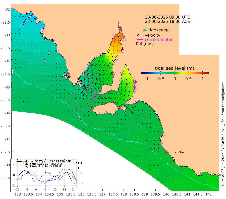 1cm/s -98T +10cm/s rms + 5cm/s 114T. SAM1DS 520m 9cm/s -139T +13cm/s rms + 5cm/s -36T. SAM2CP 100m 10cm/s -152T +21cm/s rms + 18cm/s 142T. SAM3MS 168m 9cm/s -111T +22cm/s rms + 0cm/s -30T. SAM4CY 117m 3cm/s 159T +23cm/s rms + 2cm/s 99T. SAM5CB 94m 22cm/s -134T +8cm/s rms + 3cm/s -172T. SAM6IS 83m 5cm/s -155T +11cm/s rms + 7cm/s 150T. SAM7DS 519m 31cm/s -152T +10cm/s rms + 2cm/s 87T. SAM8SG 47m 22cm/s -166T +20cm/s rms + 12cm/s -168T. NRSKAI 101m 0cm Warrnambool -2cm Port Fairy -5cm Portland -3cm Port Macdonnell -12cm Beachport -12cm Cape Rabelais (off) -11cm Robe -9cm Cape Jaffa -8cm Kingston -16cm Victor Harbor -21cm Vivonne Bay -6cm Kingscote 1cm American River -11cm Penneshaw -2cm Cape Jervis 9cm Second Valley 5cm Port Noarlunga 5cm Port Stanvac 5cm Brighton 4cm Glenelg 9cm Port Adelaide (Outer Harbor) 29cm Angus Inlet (Garden Island) 6cm Ardrossan -12cm Port Vincent -6cm Port Giles -18cm Stenhouse Bay -11cm Althorpe Island -13cm Pondalowie Bay -3cm Point Turton -7cm Port Victoria 0cm Cape Elizabeth 11cm Tiparra Reef Light 32cm Wallaroo 32cm Middle Bank 65cm Port Broughton 99cm Port Pirie 111cm Red Cliff Point (Beacon 5) 82cm Port Bonython 84cm Whyalla 75cm Western Shoal Beacon 28cm Franklin Harbor -5cm Franklin Harbor Entrance Beacon -19cm Arno Bay -23cm Port Neill -25cm Cape Hardy -29cm Tumby Bay -28cm Reevesby Island -33cm Port Lincoln -32cm Taylors Landing -14cm Whalers Bay -21cm Wedge Island Mooring -20cm Shelf Edge Mooring -27cm Coffin Bay Entrance Beacon -26cm Greenly Island -30cm Elliston -32cm Pearson Island -18cm Venus Bay -43cm Blanche Port (Streaky Bay) -46cm Thevenard -32cm St Francis Island
