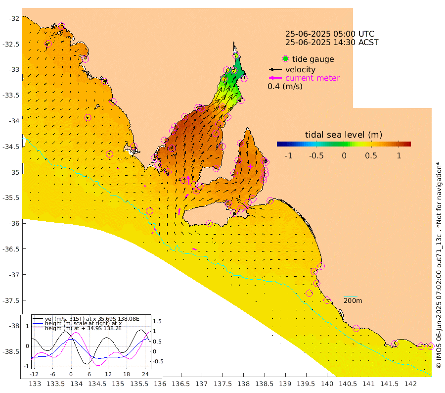 1cm/s -68T +10cm/s rms + 5cm/s 114T. SAM1DS 520m 6cm/s -81T +13cm/s rms + 5cm/s -36T. SAM2CP 100m 9cm/s -39T +21cm/s rms + 18cm/s 142T. SAM3MS 168m 13cm/s -63T +22cm/s rms + 0cm/s -30T. SAM4CY 117m 4cm/s -110T +23cm/s rms + 2cm/s 99T. SAM5CB 94m 14cm/s 42T +8cm/s rms + 3cm/s -172T. SAM6IS 83m 3cm/s -35T +11cm/s rms + 7cm/s 150T. SAM7DS 519m 28cm/s -6T +10cm/s rms + 2cm/s 87T. SAM8SG 47m 19cm/s 7T +20cm/s rms + 12cm/s -168T. NRSKAI 101m 43cm Warrnambool 42cm Port Fairy 44cm Portland 47cm Port Macdonnell 43cm Beachport 46cm Cape Rabelais (off) 46cm Robe 53cm Cape Jaffa 49cm Kingston 55cm Victor Harbor 41cm Vivonne Bay 80cm Kingscote 70cm American River 74cm Penneshaw 67cm Cape Jervis 74cm Second Valley 85cm Port Noarlunga 86cm Port Stanvac 86cm Brighton 90cm Glenelg 90cm Port Adelaide (Outer Harbor) 68cm Angus Inlet (Garden Island) 103cm Ardrossan 107cm Port Vincent 95cm Port Giles 65cm Stenhouse Bay 68cm Althorpe Island 58cm Pondalowie Bay 84cm Point Turton 82cm Port Victoria 85cm Cape Elizabeth 85cm Tiparra Reef Light 77cm Wallaroo 81cm Middle Bank 21cm Port Broughton 28cm Port Pirie 19cm Red Cliff Point (Beacon 5) 36cm Port Bonython 48cm Whyalla 57cm Western Shoal Beacon 83cm Franklin Harbor 105cm Franklin Harbor Entrance Beacon 100cm Arno Bay 107cm Port Neill 100cm Cape Hardy 96cm Tumby Bay 91cm Reevesby Island 86cm Port Lincoln 70cm Taylors Landing 79cm Whalers Bay 69cm Wedge Island Mooring 49cm Shelf Edge Mooring 61cm Coffin Bay Entrance Beacon 48cm Greenly Island 60cm Elliston 51cm Pearson Island 55cm Venus Bay 77cm Blanche Port (Streaky Bay) 72cm Thevenard 56cm St Francis Island