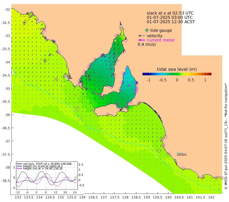 0cm/s -144T +10cm/s rms + 5cm/s 114T. SAM1DS 520m 4cm/s 39T +13cm/s rms + 5cm/s -36T. SAM2CP 100m 3cm/s 17T +21cm/s rms + 18cm/s 142T. SAM3MS 168m 6cm/s 24T +22cm/s rms + 0cm/s -30T. SAM4CY 117m 4cm/s 13T +23cm/s rms + 2cm/s 99T. SAM5CB 94m 6cm/s 46T +8cm/s rms + 3cm/s -172T. SAM6IS 83m 1cm/s -22T +11cm/s rms + 7cm/s 150T. SAM7DS 519m 9cm/s 13T +10cm/s rms + 2cm/s 87T. SAM8SG 47m 7cm/s 6T +20cm/s rms + 12cm/s -168T. NRSKAI 101m 21cm Warrnambool 17cm Port Fairy 18cm Portland 10cm Port Macdonnell 16cm Beachport 17cm Cape Rabelais (off) 15cm Robe 14cm Cape Jaffa 15cm Kingston 15cm Victor Harbor 19cm Vivonne Bay -23cm Kingscote -20cm American River -16cm Penneshaw -16cm Cape Jervis -28cm Second Valley -43cm Port Noarlunga -45cm Port Stanvac -45cm Brighton -48cm Glenelg -54cm Port Adelaide (Outer Harbor) -46cm Angus Inlet (Garden Island) -69cm Ardrossan -66cm Port Vincent -48cm Port Giles -4cm Stenhouse Bay 2cm Althorpe Island -2cm Pondalowie Bay -14cm Point Turton -19cm Port Victoria -20cm Cape Elizabeth -9cm Tiparra Reef Light -6cm Wallaroo -7cm Middle Bank 0cm Port Broughton 26cm Port Pirie 35cm Red Cliff Point (Beacon 5) 16cm Port Bonython 14cm Whyalla 14cm Western Shoal Beacon -21cm Franklin Harbor -17cm Franklin Harbor Entrance Beacon -15cm Arno Bay -13cm Port Neill -8cm Cape Hardy -5cm Tumby Bay -4cm Reevesby Island -2cm Port Lincoln 6cm Taylors Landing -8cm Whalers Bay 2cm Wedge Island Mooring 15cm Shelf Edge Mooring 15cm Coffin Bay Entrance Beacon 15cm Greenly Island 16cm Elliston 14cm Pearson Island 8cm Venus Bay 15cm Blanche Port (Streaky Bay) 18cm Thevenard 26cm St Francis Island
