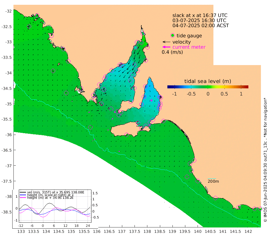 0cm/s 21T +10cm/s rms + 5cm/s 114T. SAM1DS 520m 5cm/s 80T +13cm/s rms + 5cm/s -36T. SAM2CP 100m 4cm/s 140T +21cm/s rms + 18cm/s 142T. SAM3MS 168m 5cm/s 122T +22cm/s rms + 0cm/s -30T. SAM4CY 117m 2cm/s 42T +23cm/s rms + 2cm/s 99T. SAM5CB 94m 6cm/s 55T +8cm/s rms + 3cm/s -172T. SAM6IS 83m 2cm/s 134T +11cm/s rms + 7cm/s 150T. SAM7DS 519m 8cm/s 148T +10cm/s rms + 2cm/s 87T. SAM8SG 47m 5cm/s -180T +20cm/s rms + 12cm/s -168T. NRSKAI 101m -7cm Warrnambool -8cm Port Fairy -8cm Portland -13cm Port Macdonnell -8cm Beachport -8cm Cape Rabelais (off) -9cm Robe -12cm Cape Jaffa -9cm Kingston -14cm Victor Harbor -7cm Vivonne Bay -40cm Kingscote -40cm American River -36cm Penneshaw -36cm Cape Jervis -49cm Second Valley -55cm Port Noarlunga -57cm Port Stanvac -58cm Brighton -57cm Glenelg -63cm Port Adelaide (Outer Harbor) -53cm Angus Inlet (Garden Island) -75cm Ardrossan -68cm Port Vincent -59cm Port Giles -22cm Stenhouse Bay -25cm Althorpe Island -17cm Pondalowie Bay -32cm Point Turton -30cm Port Victoria -37cm Cape Elizabeth -37cm Tiparra Reef Light -37cm Wallaroo -40cm Middle Bank -10cm Port Broughton -21cm Port Pirie -27cm Red Cliff Point (Beacon 5) -20cm Port Bonython -34cm Whyalla -39cm Western Shoal Beacon -43cm Franklin Harbor -46cm Franklin Harbor Entrance Beacon -40cm Arno Bay -39cm Port Neill -39cm Cape Hardy -35cm Tumby Bay -30cm Reevesby Island -26cm Port Lincoln -18cm Taylors Landing -30cm Whalers Bay -19cm Wedge Island Mooring -9cm Shelf Edge Mooring -10cm Coffin Bay Entrance Beacon -6cm Greenly Island -10cm Elliston -5cm Pearson Island -12cm Venus Bay -11cm Blanche Port (Streaky Bay) -7cm Thevenard -12cm St Francis Island