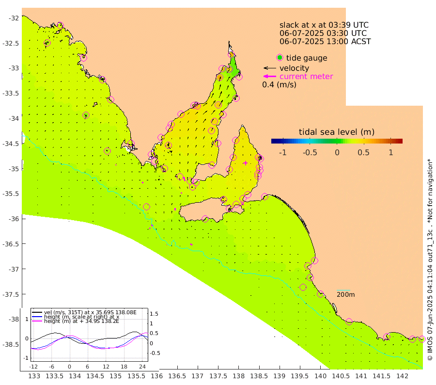 1cm/s -118T +10cm/s rms + 5cm/s 114T. SAM1DS 520m 5cm/s -90T +13cm/s rms + 5cm/s -36T. SAM2CP 100m 6cm/s -53T +21cm/s rms + 18cm/s 142T. SAM3MS 168m 7cm/s -54T +22cm/s rms + 0cm/s -30T. SAM4CY 117m 2cm/s -116T +23cm/s rms + 2cm/s 99T. SAM5CB 94m 3cm/s 7T +8cm/s rms + 3cm/s -172T. SAM6IS 83m 3cm/s -55T +11cm/s rms + 7cm/s 150T. SAM7DS 519m 14cm/s -23T +10cm/s rms + 2cm/s 87T. SAM8SG 47m 7cm/s -1T +20cm/s rms + 12cm/s -168T. NRSKAI 101m 22cm Warrnambool 22cm Port Fairy 23cm Portland 21cm Port Macdonnell 21cm Beachport 22cm Cape Rabelais (off) 22cm Robe 26cm Cape Jaffa 23cm Kingston 27cm Victor Harbor 19cm Vivonne Bay 42cm Kingscote 37cm American River 34cm Penneshaw 36cm Cape Jervis 41cm Second Valley 45cm Port Noarlunga 45cm Port Stanvac 45cm Brighton 44cm Glenelg 48cm Port Adelaide (Outer Harbor) 44cm Angus Inlet (Garden Island) 52cm Ardrossan 52cm Port Vincent 44cm Port Giles 26cm Stenhouse Bay 30cm Althorpe Island 25cm Pondalowie Bay 40cm Point Turton 37cm Port Victoria 44cm Cape Elizabeth 46cm Tiparra Reef Light 52cm Wallaroo 56cm Middle Bank 21cm Port Broughton 58cm Port Pirie 60cm Red Cliff Point (Beacon 5) 54cm Port Bonython 63cm Whyalla 64cm Western Shoal Beacon 54cm Franklin Harbor 55cm Franklin Harbor Entrance Beacon 46cm Arno Bay 43cm Port Neill 44cm Cape Hardy 41cm Tumby Bay 43cm Reevesby Island 35cm Port Lincoln 29cm Taylors Landing 36cm Whalers Bay 31cm Wedge Island Mooring 23cm Shelf Edge Mooring 27cm Coffin Bay Entrance Beacon 22cm Greenly Island 25cm Elliston 18cm Pearson Island 24cm Venus Bay 31cm Blanche Port (Streaky Bay) 28cm Thevenard 21cm St Francis Island