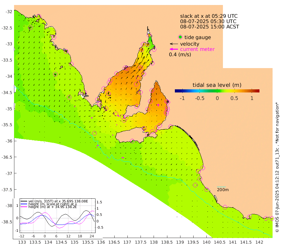 1cm/s -99T +10cm/s rms + 5cm/s 114T. SAM1DS 520m 7cm/s -111T +13cm/s rms + 5cm/s -36T. SAM2CP 100m 7cm/s -78T +21cm/s rms + 18cm/s 142T. SAM3MS 168m 11cm/s -76T +22cm/s rms + 0cm/s -30T. SAM4CY 117m 4cm/s -148T +23cm/s rms + 2cm/s 99T. SAM5CB 94m 2cm/s -97T +8cm/s rms + 3cm/s -172T. SAM6IS 83m 2cm/s -81T +11cm/s rms + 7cm/s 150T. SAM7DS 519m 12cm/s -49T +10cm/s rms + 2cm/s 87T. SAM8SG 47m 4cm/s -16T +20cm/s rms + 12cm/s -168T. NRSKAI 101m 26cm Warrnambool 25cm Port Fairy 24cm Portland 27cm Port Macdonnell 20cm Beachport 22cm Cape Rabelais (off) 22cm Robe 28cm Cape Jaffa 26cm Kingston 28cm Victor Harbor 14cm Vivonne Bay 58cm Kingscote 52cm American River 48cm Penneshaw 49cm Cape Jervis 60cm Second Valley 70cm Port Noarlunga 71cm Port Stanvac 70cm Brighton 73cm Glenelg 78cm Port Adelaide (Outer Harbor) 70cm Angus Inlet (Garden Island) 88cm Ardrossan 84cm Port Vincent 71cm Port Giles 34cm Stenhouse Bay 38cm Althorpe Island 32cm Pondalowie Bay 59cm Point Turton 56cm Port Victoria 64cm Cape Elizabeth 66cm Tiparra Reef Light 71cm Wallaroo 75cm Middle Bank 36cm Port Broughton 63cm Port Pirie 66cm Red Cliff Point (Beacon 5) 65cm Port Bonython 74cm Whyalla 76cm Western Shoal Beacon 79cm Franklin Harbor 77cm Franklin Harbor Entrance Beacon 65cm Arno Bay 66cm Port Neill 60cm Cape Hardy 54cm Tumby Bay 53cm Reevesby Island 43cm Port Lincoln 32cm Taylors Landing 48cm Whalers Bay 36cm Wedge Island Mooring 20cm Shelf Edge Mooring 27cm Coffin Bay Entrance Beacon 17cm Greenly Island 22cm Elliston 14cm Pearson Island 26cm Venus Bay 29cm Blanche Port (Streaky Bay) 24cm Thevenard 15cm St Francis Island