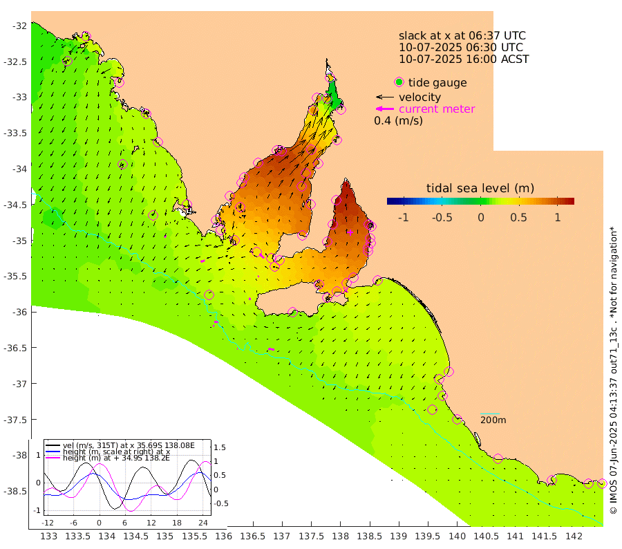 1cm/s -88T +10cm/s rms + 5cm/s 114T. SAM1DS 520m 9cm/s -115T +13cm/s rms + 5cm/s -36T. SAM2CP 100m 8cm/s -78T +21cm/s rms + 18cm/s 142T. SAM3MS 168m 13cm/s -81T +22cm/s rms + 0cm/s -30T. SAM4CY 117m 6cm/s -149T +23cm/s rms + 2cm/s 99T. SAM5CB 94m 2cm/s -124T +8cm/s rms + 3cm/s -172T. SAM6IS 83m 2cm/s -81T +11cm/s rms + 7cm/s 150T. SAM7DS 519m 14cm/s -49T +10cm/s rms + 2cm/s 87T. SAM8SG 47m 4cm/s -13T +20cm/s rms + 12cm/s -168T. NRSKAI 101m 26cm Warrnambool 26cm Port Fairy 24cm Portland 31cm Port Macdonnell 21cm Beachport 24cm Cape Rabelais (off) 24cm Robe 30cm Cape Jaffa 29cm Kingston 30cm Victor Harbor 14cm Vivonne Bay 76cm Kingscote 68cm American River 64cm Penneshaw 64cm Cape Jervis 80cm Second Valley 97cm Port Noarlunga 99cm Port Stanvac 98cm Brighton 102cm Glenelg 108cm Port Adelaide (Outer Harbor) 96cm Angus Inlet (Garden Island) 127cm Ardrossan 120cm Port Vincent 101cm Port Giles 44cm Stenhouse Bay 48cm Althorpe Island 40cm Pondalowie Bay 74cm Point Turton 72cm Port Victoria 80cm Cape Elizabeth 81cm Tiparra Reef Light 83cm Wallaroo 88cm Middle Bank 38cm Port Broughton 56cm Port Pirie 57cm Red Cliff Point (Beacon 5) 66cm Port Bonython 75cm Whyalla 77cm Western Shoal Beacon 92cm Franklin Harbor 95cm Franklin Harbor Entrance Beacon 84cm Arno Bay 88cm Port Neill 78cm Cape Hardy 70cm Tumby Bay 66cm Reevesby Island 55cm Port Lincoln 39cm Taylors Landing 61cm Whalers Bay 44cm Wedge Island Mooring 22cm Shelf Edge Mooring 29cm Coffin Bay Entrance Beacon 18cm Greenly Island 23cm Elliston 18cm Pearson Island 30cm Venus Bay 32cm Blanche Port (Streaky Bay) 25cm Thevenard 19cm St Francis Island
