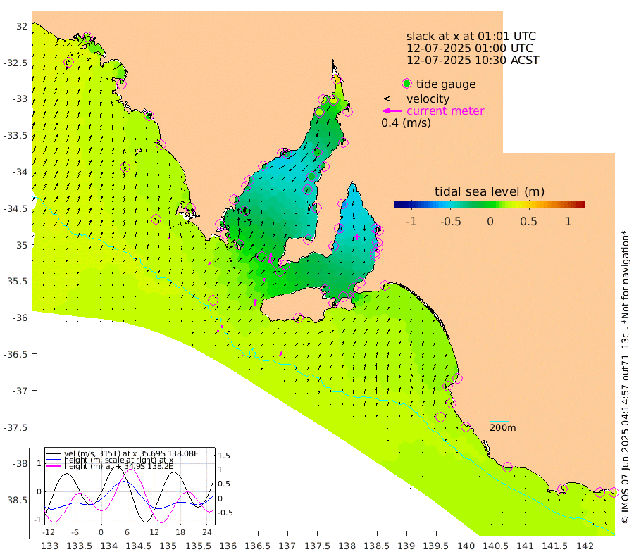 0cm/s 77T +10cm/s rms + 5cm/s 114T. SAM1DS 520m 7cm/s 33T +13cm/s rms + 5cm/s -36T. SAM2CP 100m 6cm/s 0T +21cm/s rms + 18cm/s 142T. SAM3MS 168m 10cm/s 27T +22cm/s rms + 0cm/s -30T. SAM4CY 117m 6cm/s 9T +23cm/s rms + 2cm/s 99T. SAM5CB 94m 6cm/s 16T +8cm/s rms + 3cm/s -172T. SAM6IS 83m 3cm/s -22T +11cm/s rms + 7cm/s 150T. SAM7DS 519m 20cm/s 12T +10cm/s rms + 2cm/s 87T. SAM8SG 47m 14cm/s 8T +20cm/s rms + 12cm/s -168T. NRSKAI 101m 23cm Warrnambool 20cm Port Fairy 23cm Portland 13cm Port Macdonnell 23cm Beachport 23cm Cape Rabelais (off) 20cm Robe 18cm Cape Jaffa 16cm Kingston 20cm Victor Harbor 28cm Vivonne Bay -22cm Kingscote -18cm American River -12cm Penneshaw -13cm Cape Jervis -25cm Second Valley -43cm Port Noarlunga -45cm Port Stanvac -45cm Brighton -50cm Glenelg -54cm Port Adelaide (Outer Harbor) -41cm Angus Inlet (Garden Island) -70cm Ardrossan -70cm Port Vincent -49cm Port Giles -3cm Stenhouse Bay 1cm Althorpe Island -1cm Pondalowie Bay -21cm Point Turton -23cm Port Victoria -23cm Cape Elizabeth -15cm Tiparra Reef Light -9cm Wallaroo -6cm Middle Bank -11cm Port Broughton 38cm Port Pirie 46cm Red Cliff Point (Beacon 5) 27cm Port Bonython 24cm Whyalla 19cm Western Shoal Beacon -28cm Franklin Harbor -20cm Franklin Harbor Entrance Beacon -17cm Arno Bay -20cm Port Neill -11cm Cape Hardy -6cm Tumby Bay -6cm Reevesby Island -1cm Port Lincoln 10cm Taylors Landing -11cm Whalers Bay 5cm Wedge Island Mooring 24cm Shelf Edge Mooring 17cm Coffin Bay Entrance Beacon 23cm Greenly Island 21cm Elliston 21cm Pearson Island 5cm Venus Bay 13cm Blanche Port (Streaky Bay) 17cm Thevenard 24cm St Francis Island