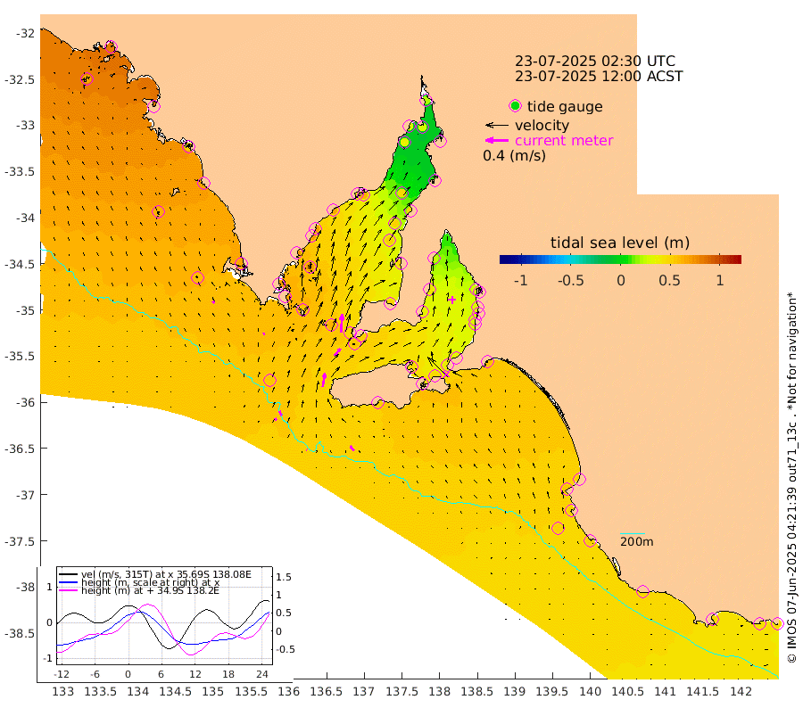1cm/s -59T +10cm/s rms + 5cm/s 114T. SAM1DS 520m 4cm/s -9T +13cm/s rms + 5cm/s -36T. SAM2CP 100m 9cm/s -23T +21cm/s rms + 18cm/s 142T. SAM3MS 168m 11cm/s -39T +22cm/s rms + 0cm/s -30T. SAM4CY 117m 4cm/s -36T +23cm/s rms + 2cm/s 99T. SAM5CB 94m 16cm/s 40T +8cm/s rms + 3cm/s -172T. SAM6IS 83m 4cm/s -30T +11cm/s rms + 7cm/s 150T. SAM7DS 519m 33cm/s 3T +10cm/s rms + 2cm/s 87T. SAM8SG 47m 23cm/s 9T +20cm/s rms + 12cm/s -168T. NRSKAI 101m 45cm Warrnambool 45cm Port Fairy 48cm Portland 47cm Port Macdonnell 50cm Beachport 52cm Cape Rabelais (off) 50cm Robe 55cm Cape Jaffa 51cm Kingston 57cm Victor Harbor 51cm Vivonne Bay 46cm Kingscote 41cm American River 48cm Penneshaw 40cm Cape Jervis 35cm Second Valley 32cm Port Noarlunga 31cm Port Stanvac 31cm Brighton 31cm Glenelg 26cm Port Adelaide (Outer Harbor) 13cm Angus Inlet (Garden Island) 25cm Ardrossan 43cm Port Vincent 37cm Port Giles 51cm Stenhouse Bay 54cm Althorpe Island 48cm Pondalowie Bay 52cm Point Turton 50cm Port Victoria 52cm Cape Elizabeth 51cm Tiparra Reef Light 46cm Wallaroo 49cm Middle Bank 10cm Port Broughton 27cm Port Pirie 20cm Red Cliff Point (Beacon 5) 28cm Port Bonython 33cm Whyalla 36cm Western Shoal Beacon 41cm Franklin Harbor 63cm Franklin Harbor Entrance Beacon 65cm Arno Bay 69cm Port Neill 70cm Cape Hardy 71cm Tumby Bay 69cm Reevesby Island 69cm Port Lincoln 66cm Taylors Landing 56cm Whalers Bay 60cm Wedge Island Mooring 56cm Shelf Edge Mooring 65cm Coffin Bay Entrance Beacon 57cm Greenly Island 66cm Elliston 62cm Pearson Island 52cm Venus Bay 82cm Blanche Port (Streaky Bay) 80cm Thevenard 67cm St Francis Island