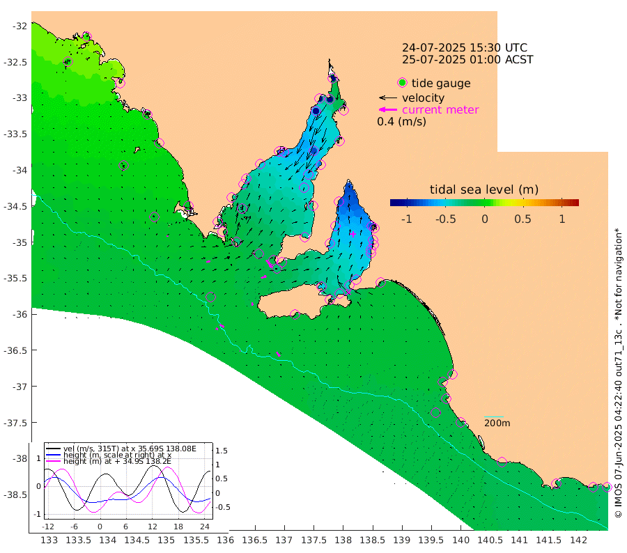 0cm/s 65T +10cm/s rms + 5cm/s 114T. SAM1DS 520m 8cm/s 76T +13cm/s rms + 5cm/s -36T. SAM2CP 100m 10cm/s 119T +21cm/s rms + 18cm/s 142T. SAM3MS 168m 11cm/s 142T +22cm/s rms + 0cm/s -30T. SAM4CY 117m 2cm/s 21T +23cm/s rms + 2cm/s 99T. SAM5CB 94m 12cm/s 71T +8cm/s rms + 3cm/s -172T. SAM6IS 83m 5cm/s 121T +11cm/s rms + 7cm/s 150T. SAM7DS 519m 20cm/s 144T +10cm/s rms + 2cm/s 87T. SAM8SG 47m 7cm/s 168T +20cm/s rms + 12cm/s -168T. NRSKAI 101m -27cm Warrnambool -25cm Port Fairy -24cm Portland -23cm Port Macdonnell -21cm Beachport -20cm Cape Rabelais (off) -19cm Robe -20cm Cape Jaffa -18cm Kingston -23cm Victor Harbor -15cm Vivonne Bay -50cm Kingscote -49cm American River -42cm Penneshaw -48cm Cape Jervis -63cm Second Valley -67cm Port Noarlunga -70cm Port Stanvac -71cm Brighton -71cm Glenelg -79cm Port Adelaide (Outer Harbor) -92cm Angus Inlet (Garden Island) -86cm Ardrossan -60cm Port Vincent -63cm Port Giles -21cm Stenhouse Bay -27cm Althorpe Island -19cm Pondalowie Bay -39cm Point Turton -39cm Port Victoria -48cm Cape Elizabeth -57cm Tiparra Reef Light -73cm Wallaroo -85cm Middle Bank -26cm Port Broughton -113cm Port Pirie -132cm Red Cliff Point (Beacon 5) -116cm Port Bonython -121cm Whyalla -111cm Western Shoal Beacon -71cm Franklin Harbor -67cm Franklin Harbor Entrance Beacon -51cm Arno Bay -46cm Port Neill -39cm Cape Hardy -34cm Tumby Bay -31cm Reevesby Island -24cm Port Lincoln -19cm Taylors Landing -31cm Whalers Bay -24cm Wedge Island Mooring -18cm Shelf Edge Mooring -10cm Coffin Bay Entrance Beacon -11cm Greenly Island -6cm Elliston -2cm Pearson Island -6cm Venus Bay 8cm Blanche Port (Streaky Bay) 9cm Thevenard 4cm St Francis Island