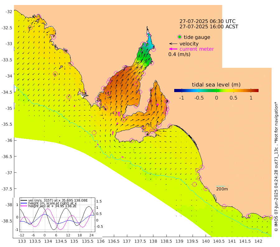 1cm/s -56T +10cm/s rms + 5cm/s 114T. SAM1DS 520m 3cm/s -80T +13cm/s rms + 5cm/s -36T. SAM2CP 100m 7cm/s -30T +21cm/s rms + 18cm/s 142T. SAM3MS 168m 9cm/s -72T +22cm/s rms + 0cm/s -30T. SAM4CY 117m 4cm/s -136T +23cm/s rms + 2cm/s 99T. SAM5CB 94m 10cm/s 46T +8cm/s rms + 3cm/s -172T. SAM6IS 83m 2cm/s -20T +11cm/s rms + 7cm/s 150T. SAM7DS 519m 22cm/s 2T +10cm/s rms + 2cm/s 87T. SAM8SG 47m 18cm/s 9T +20cm/s rms + 12cm/s -168T. NRSKAI 101m 27cm Warrnambool 28cm Port Fairy 27cm Portland 36cm Port Macdonnell 28cm Beachport 30cm Cape Rabelais (off) 30cm Robe 37cm Cape Jaffa 36cm Kingston 38cm Victor Harbor 26cm Vivonne Bay 63cm Kingscote 54cm American River 61cm Penneshaw 52cm Cape Jervis 60cm Second Valley 72cm Port Noarlunga 73cm Port Stanvac 71cm Brighton 77cm Glenelg 77cm Port Adelaide (Outer Harbor) 46cm Angus Inlet (Garden Island) 92cm Ardrossan 103cm Port Vincent 85cm Port Giles 52cm Stenhouse Bay 51cm Althorpe Island 46cm Pondalowie Bay 70cm Point Turton 70cm Port Victoria 74cm Cape Elizabeth 62cm Tiparra Reef Light 46cm Wallaroo 48cm Middle Bank -1cm Port Broughton -33cm Port Pirie -40cm Red Cliff Point (Beacon 5) -17cm Port Bonython -7cm Whyalla 3cm Western Shoal Beacon 62cm Franklin Harbor 86cm Franklin Harbor Entrance Beacon 85cm Arno Bay 94cm Port Neill 86cm Cape Hardy 83cm Tumby Bay 73cm Reevesby Island 72cm Port Lincoln 57cm Taylors Landing 63cm Whalers Bay 54cm Wedge Island Mooring 32cm Shelf Edge Mooring 45cm Coffin Bay Entrance Beacon 32cm Greenly Island 43cm Elliston 37cm Pearson Island 41cm Venus Bay 61cm Blanche Port (Streaky Bay) 56cm Thevenard 36cm St Francis Island