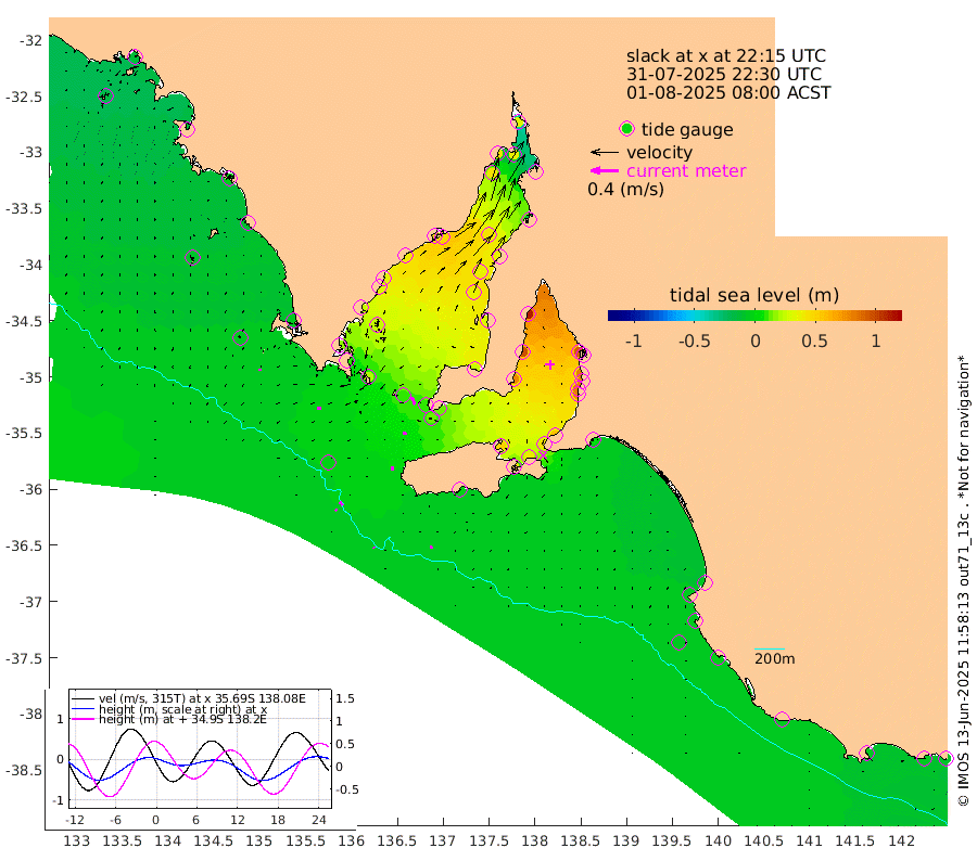 1cm/s 133T +10cm/s rms + 5cm/s 114T. SAM1DS 520m 6cm/s -96T +13cm/s rms + 5cm/s -36T. SAM2CP 100m 6cm/s -32T +21cm/s rms + 18cm/s 142T. SAM3MS 168m 3cm/s 22T +22cm/s rms + 0cm/s -30T. SAM4CY 117m 3cm/s -148T +23cm/s rms + 2cm/s 99T. SAM5CB 94m 6cm/s -99T +8cm/s rms + 3cm/s -172T. SAM6IS 83m 3cm/s -22T +11cm/s rms + 7cm/s 150T. SAM7DS 519m 12cm/s -21T +10cm/s rms + 2cm/s 87T. SAM8SG 47m 5cm/s 0T +20cm/s rms + 12cm/s -168T. NRSKAI 101m -9cm Warrnambool -7cm Port Fairy -6cm Portland -4cm Port Macdonnell -3cm Beachport -6cm Cape Rabelais (off) -4cm Robe -5cm Cape Jaffa -7cm Kingston 1cm Victor Harbor -3cm Vivonne Bay 49cm Kingscote 46cm American River 38cm Penneshaw 43cm Cape Jervis 59cm Second Valley 75cm Port Noarlunga 79cm Port Stanvac 81cm Brighton 81cm Glenelg 92cm Port Adelaide (Outer Harbor) 88cm Angus Inlet (Garden Island) 111cm Ardrossan 96cm Port Vincent 78cm Port Giles 14cm Stenhouse Bay 13cm Althorpe Island 9cm Pondalowie Bay 26cm Point Turton 27cm Port Victoria 34cm Cape Elizabeth 34cm Tiparra Reef Light 36cm Wallaroo 44cm Middle Bank -14cm Port Broughton 25cm Port Pirie 30cm Red Cliff Point (Beacon 5) 35cm Port Bonython 43cm Whyalla 43cm Western Shoal Beacon 47cm Franklin Harbor 48cm Franklin Harbor Entrance Beacon 40cm Arno Bay 33cm Port Neill 30cm Cape Hardy 25cm Tumby Bay 26cm Reevesby Island 17cm Port Lincoln 9cm Taylors Landing 22cm Whalers Bay 11cm Wedge Island Mooring -1cm Shelf Edge Mooring -5cm Coffin Bay Entrance Beacon -4cm Greenly Island -8cm Elliston -10cm Pearson Island -3cm Venus Bay -14cm Blanche Port (Streaky Bay) -15cm Thevenard -16cm St Francis Island