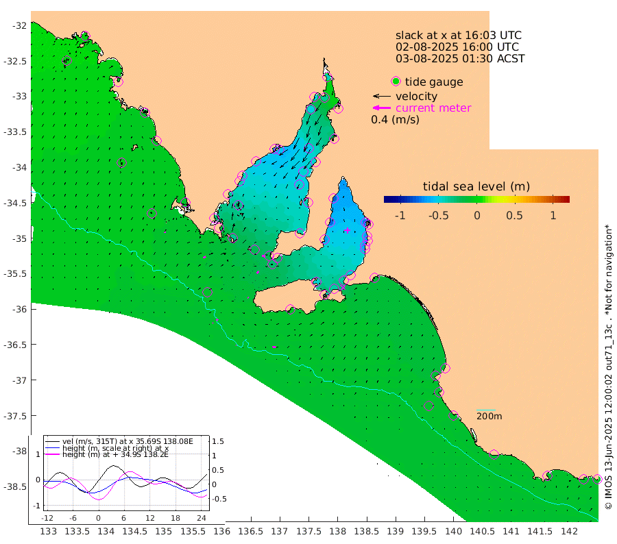 1cm/s 76T +10cm/s rms + 5cm/s 114T. SAM1DS 520m 6cm/s 69T +13cm/s rms + 5cm/s -36T. SAM2CP 100m 4cm/s 109T +21cm/s rms + 18cm/s 142T. SAM3MS 168m 8cm/s 104T +22cm/s rms + 0cm/s -30T. SAM4CY 117m 3cm/s 28T +23cm/s rms + 2cm/s 99T. SAM5CB 94m 6cm/s 42T +8cm/s rms + 3cm/s -172T. SAM6IS 83m 1cm/s 100T +11cm/s rms + 7cm/s 150T. SAM7DS 519m 7cm/s 101T +10cm/s rms + 2cm/s 87T. SAM8SG 47m 2cm/s 158T +20cm/s rms + 12cm/s -168T. NRSKAI 101m -11cm Warrnambool -10cm Port Fairy -11cm Portland -15cm Port Macdonnell -10cm Beachport -9cm Cape Rabelais (off) -11cm Robe -14cm Cape Jaffa -11cm Kingston -14cm Victor Harbor -5cm Vivonne Bay -46cm Kingscote -45cm American River -39cm Penneshaw -40cm Cape Jervis -54cm Second Valley -61cm Port Noarlunga -64cm Port Stanvac -66cm Brighton -66cm Glenelg -72cm Port Adelaide (Outer Harbor) -64cm Angus Inlet (Garden Island) -82cm Ardrossan -75cm Port Vincent -66cm Port Giles -25cm Stenhouse Bay -28cm Althorpe Island -20cm Pondalowie Bay -41cm Point Turton -39cm Port Victoria -46cm Cape Elizabeth -46cm Tiparra Reef Light -48cm Wallaroo -53cm Middle Bank -24cm Port Broughton -38cm Port Pirie -43cm Red Cliff Point (Beacon 5) -37cm Port Bonython -50cm Whyalla -52cm Western Shoal Beacon -60cm Franklin Harbor -56cm Franklin Harbor Entrance Beacon -46cm Arno Bay -45cm Port Neill -39cm Cape Hardy -35cm Tumby Bay -31cm Reevesby Island -27cm Port Lincoln -19cm Taylors Landing -34cm Whalers Bay -22cm Wedge Island Mooring -9cm Shelf Edge Mooring -10cm Coffin Bay Entrance Beacon -5cm Greenly Island -8cm Elliston 0cm Pearson Island -12cm Venus Bay -8cm Blanche Port (Streaky Bay) -4cm Thevenard -3cm St Francis Island