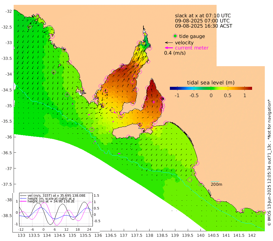 1cm/s -77T +10cm/s rms + 5cm/s 114T. SAM1DS 520m 10cm/s -119T +13cm/s rms + 5cm/s -36T. SAM2CP 100m 6cm/s -81T +21cm/s rms + 18cm/s 142T. SAM3MS 168m 12cm/s -88T +22cm/s rms + 0cm/s -30T. SAM4CY 117m 7cm/s -156T +23cm/s rms + 2cm/s 99T. SAM5CB 94m 5cm/s -133T +8cm/s rms + 3cm/s -172T. SAM6IS 83m 2cm/s -88T +11cm/s rms + 7cm/s 150T. SAM7DS 519m 12cm/s -54T +10cm/s rms + 2cm/s 87T. SAM8SG 47m 3cm/s -18T +20cm/s rms + 12cm/s -168T. NRSKAI 101m 18cm Warrnambool 18cm Port Fairy 16cm Portland 25cm Port Macdonnell 14cm Beachport 16cm Cape Rabelais (off) 17cm Robe 21cm Cape Jaffa 19cm Kingston 22cm Victor Harbor 7cm Vivonne Bay 75cm Kingscote 68cm American River 64cm Penneshaw 64cm Cape Jervis 81cm Second Valley 101cm Port Noarlunga 105cm Port Stanvac 104cm Brighton 109cm Glenelg 117cm Port Adelaide (Outer Harbor) 101cm Angus Inlet (Garden Island) 140cm Ardrossan 127cm Port Vincent 109cm Port Giles 42cm Stenhouse Bay 44cm Althorpe Island 37cm Pondalowie Bay 73cm Point Turton 73cm Port Victoria 78cm Cape Elizabeth 77cm Tiparra Reef Light 75cm Wallaroo 80cm Middle Bank 29cm Port Broughton 30cm Port Pirie 28cm Red Cliff Point (Beacon 5) 46cm Port Bonython 55cm Whyalla 58cm Western Shoal Beacon 85cm Franklin Harbor 92cm Franklin Harbor Entrance Beacon 84cm Arno Bay 88cm Port Neill 77cm Cape Hardy 69cm Tumby Bay 62cm Reevesby Island 53cm Port Lincoln 35cm Taylors Landing 60cm Whalers Bay 39cm Wedge Island Mooring 14cm Shelf Edge Mooring 20cm Coffin Bay Entrance Beacon 10cm Greenly Island 15cm Elliston 12cm Pearson Island 24cm Venus Bay 23cm Blanche Port (Streaky Bay) 17cm Thevenard 13cm St Francis Island