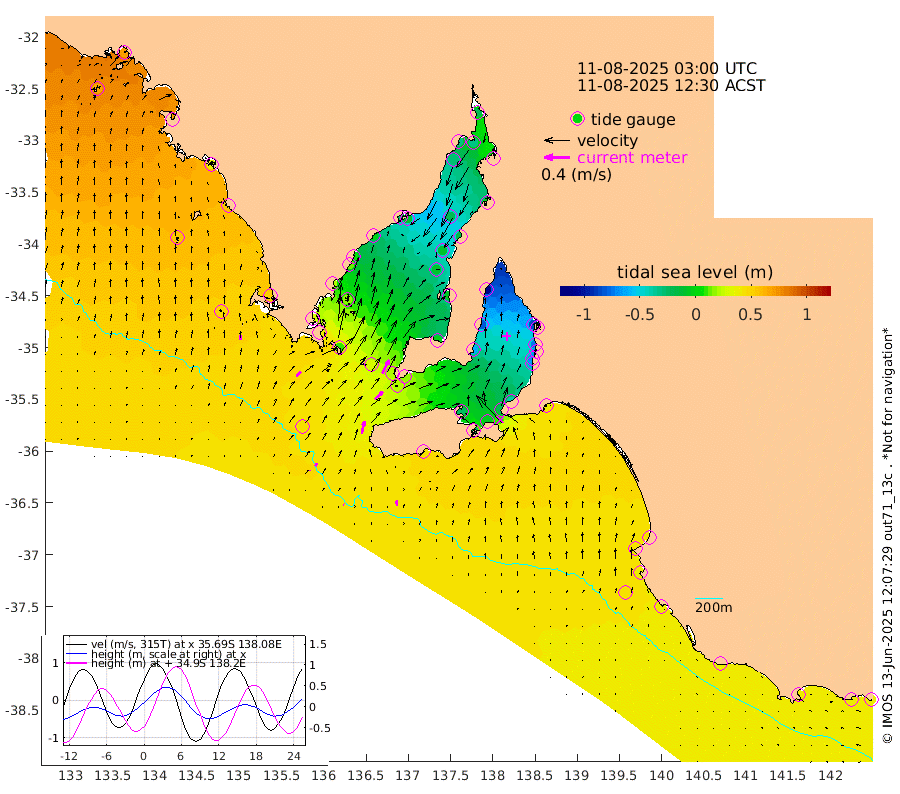 1cm/s -53T +10cm/s rms + 5cm/s 114T. SAM1DS 520m 9cm/s 47T +13cm/s rms + 5cm/s -36T. SAM2CP 100m 5cm/s 25T +21cm/s rms + 18cm/s 142T. SAM3MS 168m 8cm/s -8T +22cm/s rms + 0cm/s -30T. SAM4CY 117m 7cm/s 2T +23cm/s rms + 2cm/s 99T. SAM5CB 94m 17cm/s 48T +8cm/s rms + 3cm/s -172T. SAM6IS 83m 2cm/s -6T +11cm/s rms + 7cm/s 150T. SAM7DS 519m 23cm/s 27T +10cm/s rms + 2cm/s 87T. SAM8SG 47m 19cm/s 12T +20cm/s rms + 12cm/s -168T. NRSKAI 101m 39cm Warrnambool 38cm Port Fairy 40cm Portland 35cm Port Macdonnell 40cm Beachport 42cm Cape Rabelais (off) 40cm Robe 44cm Cape Jaffa 42cm Kingston 41cm Victor Harbor 44cm Vivonne Bay -26cm Kingscote -22cm American River -7cm Penneshaw -19cm Cape Jervis -40cm Second Valley -65cm Port Noarlunga -69cm Port Stanvac -70cm Brighton -72cm Glenelg -86cm Port Adelaide (Outer Harbor) -94cm Angus Inlet (Garden Island) -109cm Ardrossan -80cm Port Vincent -62cm Port Giles 18cm Stenhouse Bay 22cm Althorpe Island 20cm Pondalowie Bay -2cm Point Turton -4cm Port Victoria -8cm Cape Elizabeth -9cm Tiparra Reef Light -18cm Wallaroo -22cm Middle Bank -2cm Port Broughton -17cm Port Pirie -20cm Red Cliff Point (Beacon 5) -32cm Port Bonython -31cm Whyalla -27cm Western Shoal Beacon -30cm Franklin Harbor -11cm Franklin Harbor Entrance Beacon -1cm Arno Bay 4cm Port Neill 13cm Cape Hardy 21cm Tumby Bay 18cm Reevesby Island 29cm Port Lincoln 38cm Taylors Landing 10cm Whalers Bay 29cm Wedge Island Mooring 42cm Shelf Edge Mooring 50cm Coffin Bay Entrance Beacon 47cm Greenly Island 56cm Elliston 53cm Pearson Island 37cm Venus Bay 69cm Blanche Port (Streaky Bay) 70cm Thevenard 65cm St Francis Island