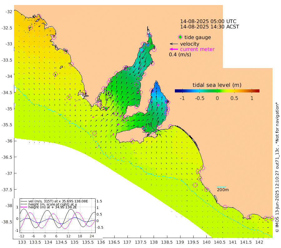 1cm/s -59T +10cm/s rms + 5cm/s 114T. SAM1DS 520m 7cm/s 60T +13cm/s rms + 5cm/s -36T. SAM2CP 100m 3cm/s 91T +21cm/s rms + 18cm/s 142T. SAM3MS 168m 3cm/s -54T +22cm/s rms + 0cm/s -30T. SAM4CY 117m 3cm/s 9T +23cm/s rms + 2cm/s 99T. SAM5CB 94m 11cm/s 65T +8cm/s rms + 3cm/s -172T. SAM6IS 83m 1cm/s 111T +11cm/s rms + 7cm/s 150T. SAM7DS 519m 10cm/s 67T +10cm/s rms + 2cm/s 87T. SAM8SG 47m 10cm/s 17T +20cm/s rms + 12cm/s -168T. NRSKAI 101m 26cm Warrnambool 25cm Port Fairy 24cm Portland 26cm Port Macdonnell 22cm Beachport 24cm Cape Rabelais (off) 25cm Robe 29cm Cape Jaffa 30cm Kingston 23cm Victor Harbor 23cm Vivonne Bay -29cm Kingscote -27cm American River -12cm Penneshaw -24cm Cape Jervis -41cm Second Valley -59cm Port Noarlunga -62cm Port Stanvac -66cm Brighton -65cm Glenelg -76cm Port Adelaide (Outer Harbor) -94cm Angus Inlet (Garden Island) -94cm Ardrossan -65cm Port Vincent -51cm Port Giles 11cm Stenhouse Bay 12cm Althorpe Island 13cm Pondalowie Bay 3cm Point Turton -1cm Port Victoria -4cm Cape Elizabeth -11cm Tiparra Reef Light -25cm Wallaroo -33cm Middle Bank -2cm Port Broughton -57cm Port Pirie -64cm Red Cliff Point (Beacon 5) -69cm Port Bonython -64cm Whyalla -55cm Western Shoal Beacon -23cm Franklin Harbor -11cm Franklin Harbor Entrance Beacon -3cm Arno Bay 5cm Port Neill 9cm Cape Hardy 15cm Tumby Bay 11cm Reevesby Island 20cm Port Lincoln 24cm Taylors Landing 7cm Whalers Bay 18cm Wedge Island Mooring 21cm Shelf Edge Mooring 33cm Coffin Bay Entrance Beacon 26cm Greenly Island 35cm Elliston 30cm Pearson Island 27cm Venus Bay 52cm Blanche Port (Streaky Bay) 51cm Thevenard 41cm St Francis Island