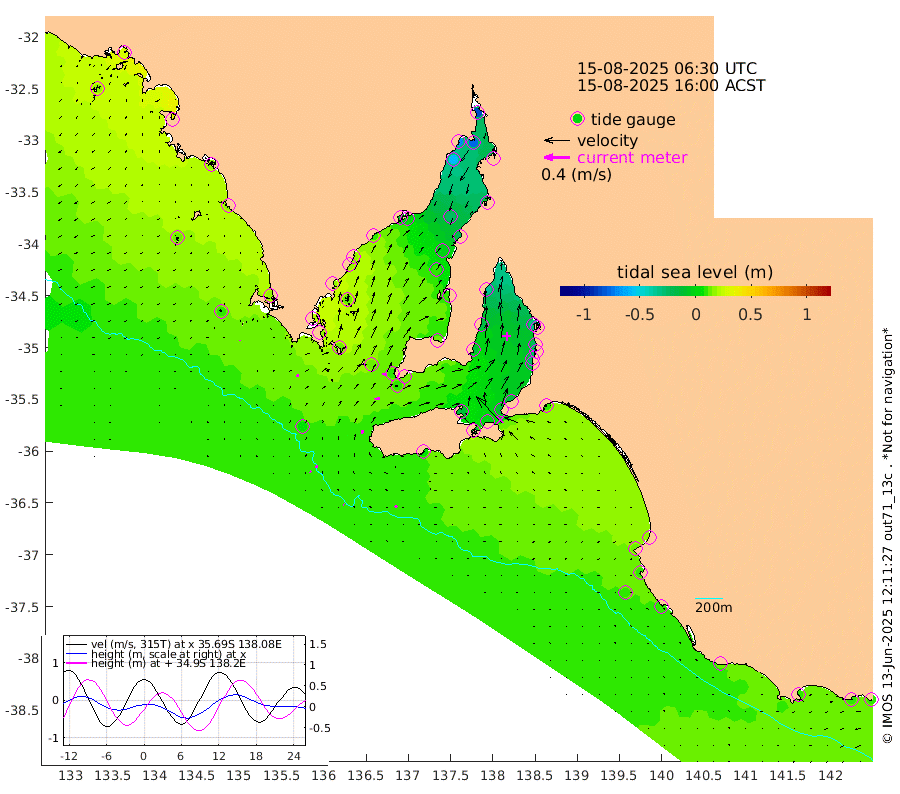 1cm/s -62T +10cm/s rms + 5cm/s 114T. SAM1DS 520m 4cm/s 70T +13cm/s rms + 5cm/s -36T. SAM2CP 100m 4cm/s 107T +21cm/s rms + 18cm/s 142T. SAM3MS 168m 4cm/s -125T +22cm/s rms + 0cm/s -30T. SAM4CY 117m 0cm/s -169T +23cm/s rms + 2cm/s 99T. SAM5CB 94m 7cm/s 81T +8cm/s rms + 3cm/s -172T. SAM6IS 83m 2cm/s 122T +11cm/s rms + 7cm/s 150T. SAM7DS 519m 7cm/s 112T +10cm/s rms + 2cm/s 87T. SAM8SG 47m 5cm/s 22T +20cm/s rms + 12cm/s -168T. NRSKAI 101m 11cm Warrnambool 10cm Port Fairy 9cm Portland 15cm Port Macdonnell 8cm Beachport 9cm Cape Rabelais (off) 11cm Robe 14cm Cape Jaffa 15cm Kingston 9cm Victor Harbor 7cm Vivonne Bay -11cm Kingscote -12cm American River -2cm Penneshaw -12cm Cape Jervis -18cm Second Valley -24cm Port Noarlunga -25cm Port Stanvac -28cm Brighton -25cm Glenelg -32cm Port Adelaide (Outer Harbor) -55cm Angus Inlet (Garden Island) -37cm Ardrossan -18cm Port Vincent -13cm Port Giles 12cm Stenhouse Bay 10cm Althorpe Island 11cm Pondalowie Bay 13cm Point Turton 10cm Port Victoria 8cm Cape Elizabeth -2cm Tiparra Reef Light -19cm Wallaroo -25cm Middle Bank -6cm Port Broughton -75cm Port Pirie -83cm Red Cliff Point (Beacon 5) -78cm Port Bonython -70cm Whyalla -59cm Western Shoal Beacon -8cm Franklin Harbor 3cm Franklin Harbor Entrance Beacon 9cm Arno Bay 17cm Port Neill 15cm Cape Hardy 18cm Tumby Bay 12cm Reevesby Island 19cm Port Lincoln 16cm Taylors Landing 11cm Whalers Bay 12cm Wedge Island Mooring 6cm Shelf Edge Mooring 17cm Coffin Bay Entrance Beacon 9cm Greenly Island 18cm Elliston 12cm Pearson Island 17cm Venus Bay 32cm Blanche Port (Streaky Bay) 29cm Thevenard 16cm St Francis Island