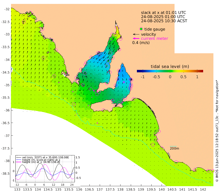 0cm/s -124T +10cm/s rms + 5cm/s 114T. SAM1DS 520m 6cm/s 49T +13cm/s rms + 5cm/s -36T. SAM2CP 100m 3cm/s 10T +21cm/s rms + 18cm/s 142T. SAM3MS 168m 7cm/s 18T +22cm/s rms + 0cm/s -30T. SAM4CY 117m 6cm/s 14T +23cm/s rms + 2cm/s 99T. SAM5CB 94m 5cm/s 39T +8cm/s rms + 3cm/s -172T. SAM6IS 83m 2cm/s -35T +11cm/s rms + 7cm/s 150T. SAM7DS 519m 9cm/s 24T +10cm/s rms + 2cm/s 87T. SAM8SG 47m 7cm/s 7T +20cm/s rms + 12cm/s -168T. NRSKAI 101m 19cm Warrnambool 18cm Port Fairy 19cm Portland 11cm Port Macdonnell 19cm Beachport 19cm Cape Rabelais (off) 16cm Robe 15cm Cape Jaffa 17cm Kingston 15cm Victor Harbor 22cm Vivonne Bay -35cm Kingscote -28cm American River -23cm Penneshaw -25cm Cape Jervis -40cm Second Valley -61cm Port Noarlunga -64cm Port Stanvac -63cm Brighton -68cm Glenelg -75cm Port Adelaide (Outer Harbor) -62cm Angus Inlet (Garden Island) -95cm Ardrossan -81cm Port Vincent -68cm Port Giles -10cm Stenhouse Bay -4cm Althorpe Island -6cm Pondalowie Bay -29cm Point Turton -32cm Port Victoria -30cm Cape Elizabeth -24cm Tiparra Reef Light -18cm Wallaroo -19cm Middle Bank 5cm Port Broughton 37cm Port Pirie 49cm Red Cliff Point (Beacon 5) 24cm Port Bonython 15cm Whyalla 9cm Western Shoal Beacon -35cm Franklin Harbor -36cm Franklin Harbor Entrance Beacon -33cm Arno Bay -31cm Port Neill -24cm Cape Hardy -19cm Tumby Bay -18cm Reevesby Island -12cm Port Lincoln 2cm Taylors Landing -20cm Whalers Bay -2cm Wedge Island Mooring 18cm Shelf Edge Mooring 14cm Coffin Bay Entrance Beacon 18cm Greenly Island 16cm Elliston 19cm Pearson Island 5cm Venus Bay 13cm Blanche Port (Streaky Bay) 15cm Thevenard 27cm St Francis Island