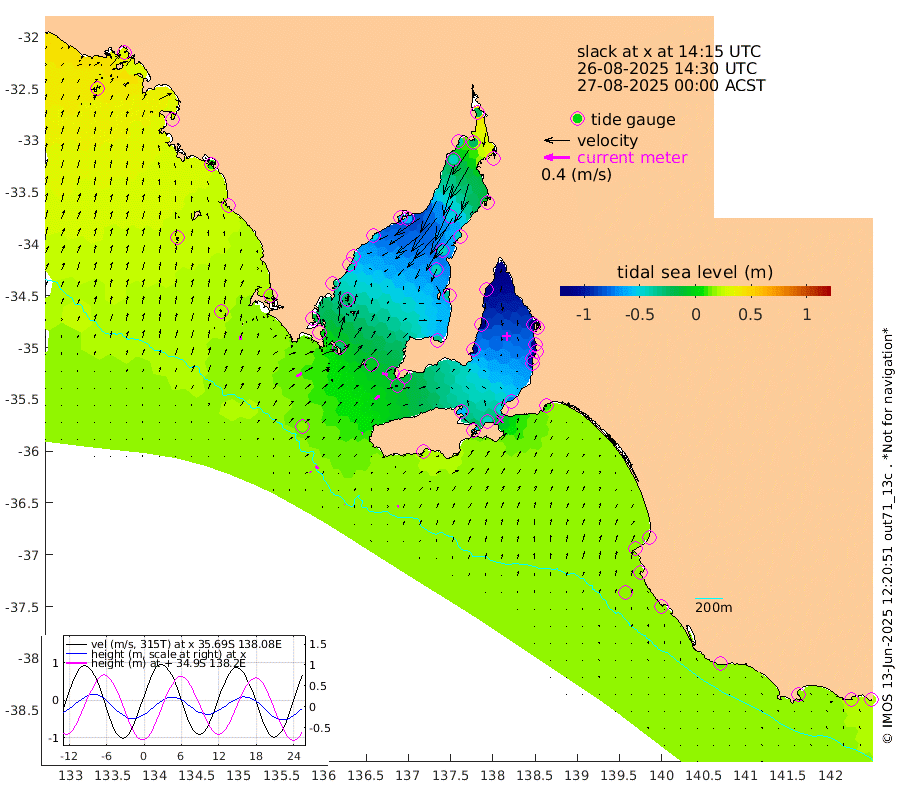 1cm/s 67T +10cm/s rms + 5cm/s 114T. SAM1DS 520m 9cm/s 63T +13cm/s rms + 5cm/s -36T. SAM2CP 100m 5cm/s 137T +21cm/s rms + 18cm/s 142T. SAM3MS 168m 3cm/s 108T +22cm/s rms + 0cm/s -30T. SAM4CY 117m 7cm/s 12T +23cm/s rms + 2cm/s 99T. SAM5CB 94m 9cm/s 58T +8cm/s rms + 3cm/s -172T. SAM6IS 83m 2cm/s 144T +11cm/s rms + 7cm/s 150T. SAM7DS 519m 9cm/s 105T +10cm/s rms + 2cm/s 87T. SAM8SG 47m 2cm/s 73T +20cm/s rms + 12cm/s -168T. NRSKAI 101m 19cm Warrnambool 19cm Port Fairy 18cm Portland 13cm Port Macdonnell 18cm Beachport 18cm Cape Rabelais (off) 17cm Robe 16cm Cape Jaffa 17cm Kingston 11cm Victor Harbor 20cm Vivonne Bay -59cm Kingscote -54cm American River -44cm Penneshaw -51cm Cape Jervis -74cm Second Valley -97cm Port Noarlunga -102cm Port Stanvac -104cm Brighton -107cm Glenelg -120cm Port Adelaide (Outer Harbor) -109cm Angus Inlet (Garden Island) -148cm Ardrossan -119cm Port Vincent -102cm Port Giles -13cm Stenhouse Bay -13cm Althorpe Island -5cm Pondalowie Bay -34cm Point Turton -36cm Port Victoria -44cm Cape Elizabeth -44cm Tiparra Reef Light -43cm Wallaroo -51cm Middle Bank 2cm Port Broughton -10cm Port Pirie -22cm Red Cliff Point (Beacon 5) -23cm Port Bonython -38cm Whyalla -43cm Western Shoal Beacon -56cm Franklin Harbor -59cm Franklin Harbor Entrance Beacon -49cm Arno Bay -46cm Port Neill -41cm Cape Hardy -33cm Tumby Bay -24cm Reevesby Island -15cm Port Lincoln 0cm Taylors Landing -27cm Whalers Bay -5cm Wedge Island Mooring 16cm Shelf Edge Mooring 19cm Coffin Bay Entrance Beacon 22cm Greenly Island 21cm Elliston 27cm Pearson Island 10cm Venus Bay 28cm Blanche Port (Streaky Bay) 32cm Thevenard 34cm St Francis Island