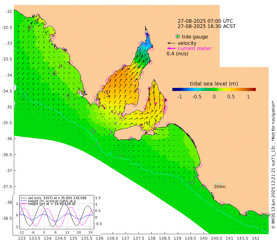 1cm/s -53T +10cm/s rms + 5cm/s 114T. SAM1DS 520m 1cm/s -119T +13cm/s rms + 5cm/s -36T. SAM2CP 100m 4cm/s 34T +21cm/s rms + 18cm/s 142T. SAM3MS 168m 5cm/s -122T +22cm/s rms + 0cm/s -30T. SAM4CY 117m 5cm/s -157T +23cm/s rms + 2cm/s 99T. SAM5CB 94m 6cm/s 72T +8cm/s rms + 3cm/s -172T. SAM6IS 83m 2cm/s 56T +11cm/s rms + 7cm/s 150T. SAM7DS 519m 8cm/s 30T +10cm/s rms + 2cm/s 87T. SAM8SG 47m 9cm/s 14T +20cm/s rms + 12cm/s -168T. NRSKAI 101m 0cm Warrnambool 0cm Port Fairy 0cm Portland 9cm Port Macdonnell 0cm Beachport 3cm Cape Rabelais (off) 4cm Robe 7cm Cape Jaffa 7cm Kingston 8cm Victor Harbor 0cm Vivonne Bay 39cm Kingscote 32cm American River 37cm Penneshaw 29cm Cape Jervis 36cm Second Valley 52cm Port Noarlunga 54cm Port Stanvac 53cm Brighton 58cm Glenelg 60cm Port Adelaide (Outer Harbor) 27cm Angus Inlet (Garden Island) 78cm Ardrossan 83cm Port Vincent 68cm Port Giles 30cm Stenhouse Bay 25cm Althorpe Island 22cm Pondalowie Bay 42cm Point Turton 42cm Port Victoria 43cm Cape Elizabeth 30cm Tiparra Reef Light 8cm Wallaroo 7cm Middle Bank -20cm Port Broughton -88cm Port Pirie -97cm Red Cliff Point (Beacon 5) -70cm Port Bonython -60cm Whyalla -47cm Western Shoal Beacon 27cm Franklin Harbor 47cm Franklin Harbor Entrance Beacon 52cm Arno Bay 61cm Port Neill 54cm Cape Hardy 52cm Tumby Bay 40cm Reevesby Island 41cm Port Lincoln 27cm Taylors Landing 37cm Whalers Bay 24cm Wedge Island Mooring 3cm Shelf Edge Mooring 13cm Coffin Bay Entrance Beacon 3cm Greenly Island 12cm Elliston 9cm Pearson Island 17cm Venus Bay 26cm Blanche Port (Streaky Bay) 21cm Thevenard 11cm St Francis Island