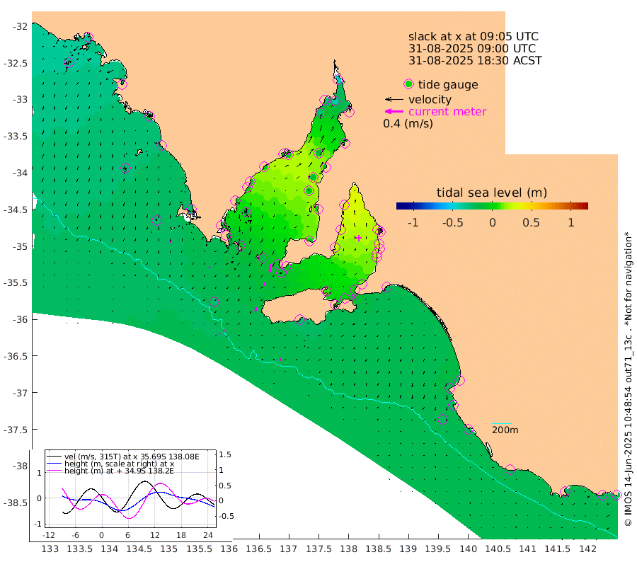 0cm/s 38T +10cm/s rms + 5cm/s 114T. SAM1DS 520m 4cm/s -152T +13cm/s rms + 5cm/s -36T. SAM2CP 100m 4cm/s 140T +21cm/s rms + 18cm/s 142T. SAM3MS 168m 6cm/s -167T +22cm/s rms + 0cm/s -30T. SAM4CY 117m 4cm/s 177T +23cm/s rms + 2cm/s 99T. SAM5CB 94m 6cm/s -174T +8cm/s rms + 3cm/s -172T. SAM6IS 83m 2cm/s 146T +11cm/s rms + 7cm/s 150T. SAM7DS 519m 17cm/s -175T +10cm/s rms + 2cm/s 87T. SAM8SG 47m 10cm/s -172T +20cm/s rms + 12cm/s -168T. NRSKAI 101m -26cm Warrnambool -25cm Port Fairy -26cm Portland -20cm Port Macdonnell -25cm Beachport -26cm Cape Rabelais (off) -24cm Robe -23cm Cape Jaffa -25cm Kingston -25cm Victor Harbor -27cm Vivonne Bay 8cm Kingscote 5cm American River 0cm Penneshaw 2cm Cape Jervis 14cm Second Valley 23cm Port Noarlunga 25cm Port Stanvac 28cm Brighton 28cm Glenelg 32cm Port Adelaide (Outer Harbor) 23cm Angus Inlet (Garden Island) 44cm Ardrossan 33cm Port Vincent 28cm Port Giles -7cm Stenhouse Bay -10cm Althorpe Island -11cm Pondalowie Bay -2cm Point Turton -1cm Port Victoria -1cm Cape Elizabeth -8cm Tiparra Reef Light -11cm Wallaroo -12cm Middle Bank -4cm Port Broughton -43cm Port Pirie -45cm Red Cliff Point (Beacon 5) -40cm Port Bonython -32cm Whyalla -28cm Western Shoal Beacon 4cm Franklin Harbor -2cm Franklin Harbor Entrance Beacon -4cm Arno Bay -5cm Port Neill -8cm Cape Hardy -10cm Tumby Bay -16cm Reevesby Island -15cm Port Lincoln -20cm Taylors Landing -5cm Whalers Bay -17cm Wedge Island Mooring -27cm Shelf Edge Mooring -29cm Coffin Bay Entrance Beacon -28cm Greenly Island -27cm Elliston -30cm Pearson Island -19cm Venus Bay -32cm Blanche Port (Streaky Bay) -34cm Thevenard -31cm St Francis Island