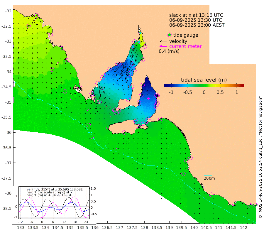 1cm/s 115T +10cm/s rms + 5cm/s 114T. SAM1DS 520m 8cm/s 66T +13cm/s rms + 5cm/s -36T. SAM2CP 100m 9cm/s 133T +21cm/s rms + 18cm/s 142T. SAM3MS 168m 6cm/s 145T +22cm/s rms + 0cm/s -30T. SAM4CY 117m 6cm/s 12T +23cm/s rms + 2cm/s 99T. SAM5CB 94m 5cm/s 78T +8cm/s rms + 3cm/s -172T. SAM6IS 83m 3cm/s 139T +11cm/s rms + 7cm/s 150T. SAM7DS 519m 16cm/s 149T +10cm/s rms + 2cm/s 87T. SAM8SG 47m 6cm/s 172T +20cm/s rms + 12cm/s -168T. NRSKAI 101m -4cm Warrnambool -4cm Port Fairy -3cm Portland -4cm Port Macdonnell -1cm Beachport -1cm Cape Rabelais (off) -1cm Robe -3cm Cape Jaffa 0cm Kingston -7cm Victor Harbor 3cm Vivonne Bay -61cm Kingscote -55cm American River -50cm Penneshaw -55cm Cape Jervis -72cm Second Valley -90cm Port Noarlunga -95cm Port Stanvac -96cm Brighton -99cm Glenelg -110cm Port Adelaide (Outer Harbor) -102cm Angus Inlet (Garden Island) -132cm Ardrossan -101cm Port Vincent -95cm Port Giles -21cm Stenhouse Bay -22cm Althorpe Island -14cm Pondalowie Bay -43cm Point Turton -46cm Port Victoria -53cm Cape Elizabeth -54cm Tiparra Reef Light -57cm Wallaroo -67cm Middle Bank 3cm Port Broughton -35cm Port Pirie -48cm Red Cliff Point (Beacon 5) -46cm Port Bonython -60cm Whyalla -61cm Western Shoal Beacon -65cm Franklin Harbor -73cm Franklin Harbor Entrance Beacon -61cm Arno Bay -58cm Port Neill -52cm Cape Hardy -45cm Tumby Bay -36cm Reevesby Island -29cm Port Lincoln -14cm Taylors Landing -36cm Whalers Bay -18cm Wedge Island Mooring 0cm Shelf Edge Mooring 4cm Coffin Bay Entrance Beacon 4cm Greenly Island 6cm Elliston 13cm Pearson Island 2cm Venus Bay 15cm Blanche Port (Streaky Bay) 18cm Thevenard 16cm St Francis Island