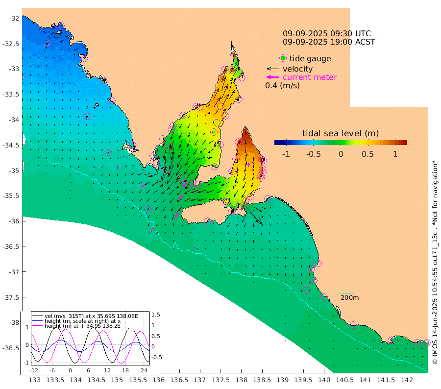 0cm/s 106T +10cm/s rms + 5cm/s 114T. SAM1DS 520m 11cm/s -126T +13cm/s rms + 5cm/s -36T. SAM2CP 100m 7cm/s -101T +21cm/s rms + 18cm/s 142T. SAM3MS 168m 4cm/s -112T +22cm/s rms + 0cm/s -30T. SAM4CY 117m 5cm/s 178T +23cm/s rms + 2cm/s 99T. SAM5CB 94m 18cm/s -127T +8cm/s rms + 3cm/s -172T. SAM6IS 83m 3cm/s -96T +11cm/s rms + 7cm/s 150T. SAM7DS 519m 20cm/s -126T +10cm/s rms + 2cm/s 87T. SAM8SG 47m 16cm/s -162T +20cm/s rms + 12cm/s -168T. NRSKAI 101m -25cm Warrnambool -24cm Port Fairy -26cm Portland -25cm Port Macdonnell -27cm Beachport -28cm Cape Rabelais (off) -29cm Robe -31cm Cape Jaffa -33cm Kingston -28cm Victor Harbor -32cm Vivonne Bay 40cm Kingscote 34cm American River 17cm Penneshaw 32cm Cape Jervis 57cm Second Valley 76cm Port Noarlunga 79cm Port Stanvac 84cm Brighton 83cm Glenelg 98cm Port Adelaide (Outer Harbor) 118cm Angus Inlet (Garden Island) 118cm Ardrossan 76cm Port Vincent 67cm Port Giles -13cm Stenhouse Bay -14cm Althorpe Island -15cm Pondalowie Bay 5cm Point Turton 9cm Port Victoria 15cm Cape Elizabeth 20cm Tiparra Reef Light 42cm Wallaroo 53cm Middle Bank 21cm Port Broughton 82cm Port Pirie 95cm Red Cliff Point (Beacon 5) 91cm Port Bonython 92cm Whyalla 79cm Western Shoal Beacon 45cm Franklin Harbor 24cm Franklin Harbor Entrance Beacon 8cm Arno Bay -2cm Port Neill -6cm Cape Hardy -14cm Tumby Bay -17cm Reevesby Island -27cm Port Lincoln -32cm Taylors Landing -5cm Whalers Bay -22cm Wedge Island Mooring -29cm Shelf Edge Mooring -45cm Coffin Bay Entrance Beacon -37cm Greenly Island -48cm Elliston -45cm Pearson Island -36cm Venus Bay -72cm Blanche Port (Streaky Bay) -73cm Thevenard -60cm St Francis Island