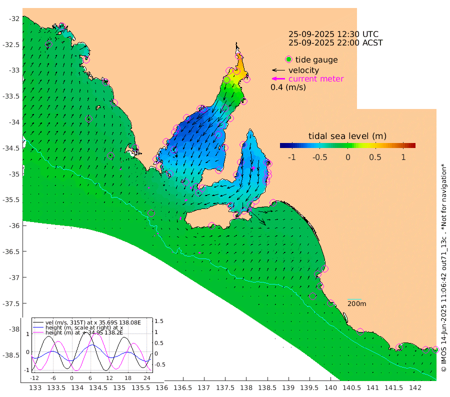 1cm/s 96T +10cm/s rms + 5cm/s 114T. SAM1DS 520m 4cm/s 65T +13cm/s rms + 5cm/s -36T. SAM2CP 100m 2cm/s -177T +21cm/s rms + 18cm/s 142T. SAM3MS 168m 6cm/s 86T +22cm/s rms + 0cm/s -30T. SAM4CY 117m 5cm/s 29T +23cm/s rms + 2cm/s 99T. SAM5CB 94m 8cm/s -114T +8cm/s rms + 3cm/s -172T. SAM6IS 83m 1cm/s -116T +11cm/s rms + 7cm/s 150T. SAM7DS 519m 7cm/s -162T +10cm/s rms + 2cm/s 87T. SAM8SG 47m 9cm/s -166T +20cm/s rms + 12cm/s -168T. NRSKAI 101m -9cm Warrnambool -9cm Port Fairy -10cm Portland -16cm Port Macdonnell -9cm Beachport -10cm Cape Rabelais (off) -13cm Robe -18cm Cape Jaffa -16cm Kingston -18cm Victor Harbor -5cm Vivonne Bay -51cm Kingscote -44cm American River -49cm Penneshaw -41cm Cape Jervis -49cm Second Valley -63cm Port Noarlunga -67cm Port Stanvac -66cm Brighton -70cm Glenelg -73cm Port Adelaide (Outer Harbor) -38cm Angus Inlet (Garden Island) -89cm Ardrossan -93cm Port Vincent -80cm Port Giles -39cm Stenhouse Bay -37cm Althorpe Island -31cm Pondalowie Bay -56cm Point Turton -57cm Port Victoria -58cm Cape Elizabeth -50cm Tiparra Reef Light -31cm Wallaroo -30cm Middle Bank 6cm Port Broughton 57cm Port Pirie 66cm Red Cliff Point (Beacon 5) 51cm Port Bonython 32cm Whyalla 16cm Western Shoal Beacon -51cm Franklin Harbor -68cm Franklin Harbor Entrance Beacon -67cm Arno Bay -73cm Port Neill -66cm Cape Hardy -63cm Tumby Bay -54cm Reevesby Island -53cm Port Lincoln -35cm Taylors Landing -51cm Whalers Bay -34cm Wedge Island Mooring -10cm Shelf Edge Mooring -22cm Coffin Bay Entrance Beacon -11cm Greenly Island -21cm Elliston -10cm Pearson Island -26cm Venus Bay -36cm Blanche Port (Streaky Bay) -31cm Thevenard -20cm St Francis Island