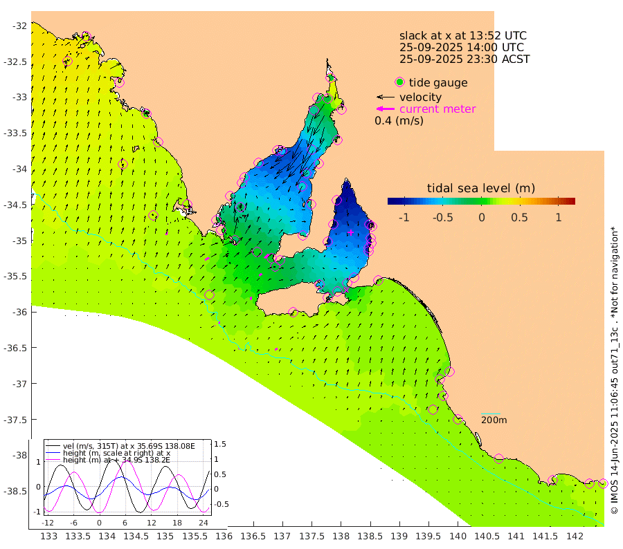 1cm/s 79T +10cm/s rms + 5cm/s 114T. SAM1DS 520m 10cm/s 55T +13cm/s rms + 5cm/s -36T. SAM2CP 100m 3cm/s 95T +21cm/s rms + 18cm/s 142T. SAM3MS 168m 6cm/s 71T +22cm/s rms + 0cm/s -30T. SAM4CY 117m 7cm/s 11T +23cm/s rms + 2cm/s 99T. SAM5CB 94m 8cm/s 43T +8cm/s rms + 3cm/s -172T. SAM6IS 83m 1cm/s 84T +11cm/s rms + 7cm/s 150T. SAM7DS 519m 12cm/s 47T +10cm/s rms + 2cm/s 87T. SAM8SG 47m 6cm/s 18T +20cm/s rms + 12cm/s -168T. NRSKAI 101m 21cm Warrnambool 20cm Port Fairy 20cm Portland 14cm Port Macdonnell 21cm Beachport 21cm Cape Rabelais (off) 18cm Robe 15cm Cape Jaffa 19cm Kingston 14cm Victor Harbor 26cm Vivonne Bay -59cm Kingscote -52cm American River -42cm Penneshaw -48cm Cape Jervis -71cm Second Valley -94cm Port Noarlunga -99cm Port Stanvac -102cm Brighton -105cm Glenelg -117cm Port Adelaide (Outer Harbor) -103cm Angus Inlet (Garden Island) -144cm Ardrossan -119cm Port Vincent -101cm Port Giles -13cm Stenhouse Bay -12cm Althorpe Island -6cm Pondalowie Bay -36cm Point Turton -40cm Port Victoria -46cm Cape Elizabeth -43cm Tiparra Reef Light -43cm Wallaroo -49cm Middle Bank -10cm Port Broughton -6cm Port Pirie -12cm Red Cliff Point (Beacon 5) -12cm Port Bonython -30cm Whyalla -37cm Western Shoal Beacon -62cm Franklin Harbor -57cm Franklin Harbor Entrance Beacon -45cm Arno Bay -42cm Port Neill -36cm Cape Hardy -28cm Tumby Bay -21cm Reevesby Island -12cm Port Lincoln 4cm Taylors Landing -28cm Whalers Bay -3cm Wedge Island Mooring 21cm Shelf Edge Mooring 22cm Coffin Bay Entrance Beacon 25cm Greenly Island 23cm Elliston 31cm Pearson Island 10cm Venus Bay 28cm Blanche Port (Streaky Bay) 33cm Thevenard 35cm St Francis Island