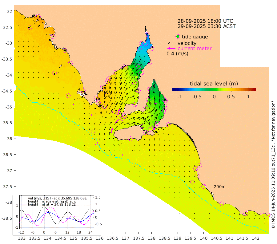 1cm/s 36T +10cm/s rms + 5cm/s 114T. SAM1DS 520m 6cm/s 30T +13cm/s rms + 5cm/s -36T. SAM2CP 100m 8cm/s 17T +21cm/s rms + 18cm/s 142T. SAM3MS 168m 5cm/s 24T +22cm/s rms + 0cm/s -30T. SAM4CY 117m 2cm/s -60T +23cm/s rms + 2cm/s 99T. SAM5CB 94m 22cm/s 47T +8cm/s rms + 3cm/s -172T. SAM6IS 83m 4cm/s 27T +11cm/s rms + 7cm/s 150T. SAM7DS 519m 30cm/s 21T +10cm/s rms + 2cm/s 87T. SAM8SG 47m 25cm/s 13T +20cm/s rms + 12cm/s -168T. NRSKAI 101m 36cm Warrnambool 33cm Port Fairy 34cm Portland 33cm Port Macdonnell 34cm Beachport 35cm Cape Rabelais (off) 35cm Robe 34cm Cape Jaffa 37cm Kingston 38cm Victor Harbor 36cm Vivonne Bay 17cm Kingscote 11cm American River 29cm Penneshaw 14cm Cape Jervis 4cm Second Valley 3cm Port Noarlunga 4cm Port Stanvac 0cm Brighton 4cm Glenelg -3cm Port Adelaide (Outer Harbor) -27cm Angus Inlet (Garden Island) -3cm Ardrossan 10cm Port Vincent 19cm Port Giles 39cm Stenhouse Bay 37cm Althorpe Island 33cm Pondalowie Bay 37cm Point Turton 33cm Port Victoria 28cm Cape Elizabeth 26cm Tiparra Reef Light 1cm Wallaroo -1cm Middle Bank -38cm Port Broughton -73cm Port Pirie -85cm Red Cliff Point (Beacon 5) -56cm Port Bonython -56cm Whyalla -46cm Western Shoal Beacon 3cm Franklin Harbor 39cm Franklin Harbor Entrance Beacon 49cm Arno Bay 64cm Port Neill 55cm Cape Hardy 57cm Tumby Bay 52cm Reevesby Island 58cm Port Lincoln 51cm Taylors Landing 38cm Whalers Bay 42cm Wedge Island Mooring 36cm Shelf Edge Mooring 45cm Coffin Bay Entrance Beacon 38cm Greenly Island 45cm Elliston 42cm Pearson Island 36cm Venus Bay 61cm Blanche Port (Streaky Bay) 60cm Thevenard 49cm St Francis Island