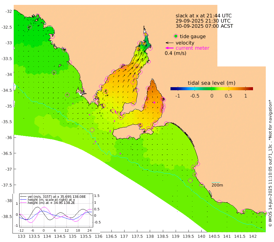 0cm/s -25T +10cm/s rms + 5cm/s 114T. SAM1DS 520m 6cm/s -100T +13cm/s rms + 5cm/s -36T. SAM2CP 100m 8cm/s -43T +21cm/s rms + 18cm/s 142T. SAM3MS 168m 7cm/s -44T +22cm/s rms + 0cm/s -30T. SAM4CY 117m 3cm/s -127T +23cm/s rms + 2cm/s 99T. SAM5CB 94m 6cm/s 31T +8cm/s rms + 3cm/s -172T. SAM6IS 83m 3cm/s -33T +11cm/s rms + 7cm/s 150T. SAM7DS 519m 17cm/s -19T +10cm/s rms + 2cm/s 87T. SAM8SG 47m 10cm/s 2T +20cm/s rms + 12cm/s -168T. NRSKAI 101m 15cm Warrnambool 14cm Port Fairy 16cm Portland 16cm Port Macdonnell 17cm Beachport 18cm Cape Rabelais (off) 15cm Robe 17cm Cape Jaffa 17cm Kingston 22cm Victor Harbor 14cm Vivonne Bay 60cm Kingscote 54cm American River 51cm Penneshaw 51cm Cape Jervis 65cm Second Valley 77cm Port Noarlunga 80cm Port Stanvac 82cm Brighton 84cm Glenelg 89cm Port Adelaide (Outer Harbor) 86cm Angus Inlet (Garden Island) 105cm Ardrossan 94cm Port Vincent 80cm Port Giles 32cm Stenhouse Bay 35cm Althorpe Island 26cm Pondalowie Bay 43cm Point Turton 43cm Port Victoria 49cm Cape Elizabeth 53cm Tiparra Reef Light 55cm Wallaroo 61cm Middle Bank 11cm Port Broughton 48cm Port Pirie 55cm Red Cliff Point (Beacon 5) 62cm Port Bonython 63cm Whyalla 61cm Western Shoal Beacon 57cm Franklin Harbor 64cm Franklin Harbor Entrance Beacon 57cm Arno Bay 62cm Port Neill 51cm Cape Hardy 46cm Tumby Bay 41cm Reevesby Island 37cm Port Lincoln 28cm Taylors Landing 39cm Whalers Bay 30cm Wedge Island Mooring 19cm Shelf Edge Mooring 17cm Coffin Bay Entrance Beacon 13cm Greenly Island 14cm Elliston 13cm Pearson Island 15cm Venus Bay 11cm Blanche Port (Streaky Bay) 8cm Thevenard 8cm St Francis Island