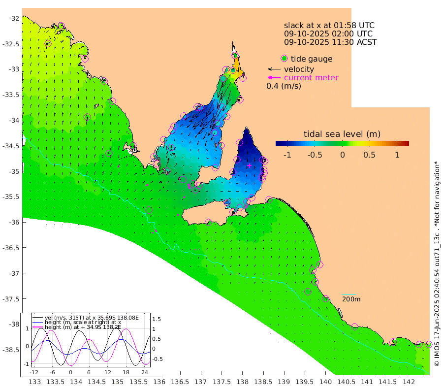 1cm/s -78T +10cm/s rms + 5cm/s 114T. SAM1DS 520m 7cm/s 77T +13cm/s rms + 5cm/s -36T. SAM2CP 100m 8cm/s 153T +21cm/s rms + 18cm/s 142T. SAM3MS 168m 1cm/s -157T +22cm/s rms + 0cm/s -30T. SAM4CY 117m 6cm/s 26T +23cm/s rms + 2cm/s 99T. SAM5CB 94m 4cm/s -178T +8cm/s rms + 3cm/s -172T. SAM6IS 83m 4cm/s 167T +11cm/s rms + 7cm/s 150T. SAM7DS 519m 16cm/s 162T +10cm/s rms + 2cm/s 87T. SAM8SG 47m 7cm/s -178T +20cm/s rms + 12cm/s -168T. NRSKAI 101m 10cm Warrnambool 9cm Port Fairy 9cm Portland 6cm Port Macdonnell 7cm Beachport 7cm Cape Rabelais (off) 8cm Robe 9cm Cape Jaffa 11cm Kingston 0cm Victor Harbor 7cm Vivonne Bay -71cm Kingscote -59cm American River -53cm Penneshaw -58cm Cape Jervis -79cm Second Valley -107cm Port Noarlunga -111cm Port Stanvac -114cm Brighton -117cm Glenelg -129cm Port Adelaide (Outer Harbor) -122cm Angus Inlet (Garden Island) -159cm Ardrossan -129cm Port Vincent -112cm Port Giles -24cm Stenhouse Bay -20cm Althorpe Island -14cm Pondalowie Bay -42cm Point Turton -44cm Port Victoria -47cm Cape Elizabeth -47cm Tiparra Reef Light -45cm Wallaroo -55cm Middle Bank 25cm Port Broughton -3cm Port Pirie -4cm Red Cliff Point (Beacon 5) -30cm Port Bonython -36cm Whyalla -37cm Western Shoal Beacon -58cm Franklin Harbor -70cm Franklin Harbor Entrance Beacon -61cm Arno Bay -61cm Port Neill -50cm Cape Hardy -43cm Tumby Bay -39cm Reevesby Island -30cm Port Lincoln -14cm Taylors Landing -35cm Whalers Bay -16cm Wedge Island Mooring 3cm Shelf Edge Mooring 7cm Coffin Bay Entrance Beacon 7cm Greenly Island 10cm Elliston 11cm Pearson Island 4cm Venus Bay 17cm Blanche Port (Streaky Bay) 18cm Thevenard 20cm St Francis Island