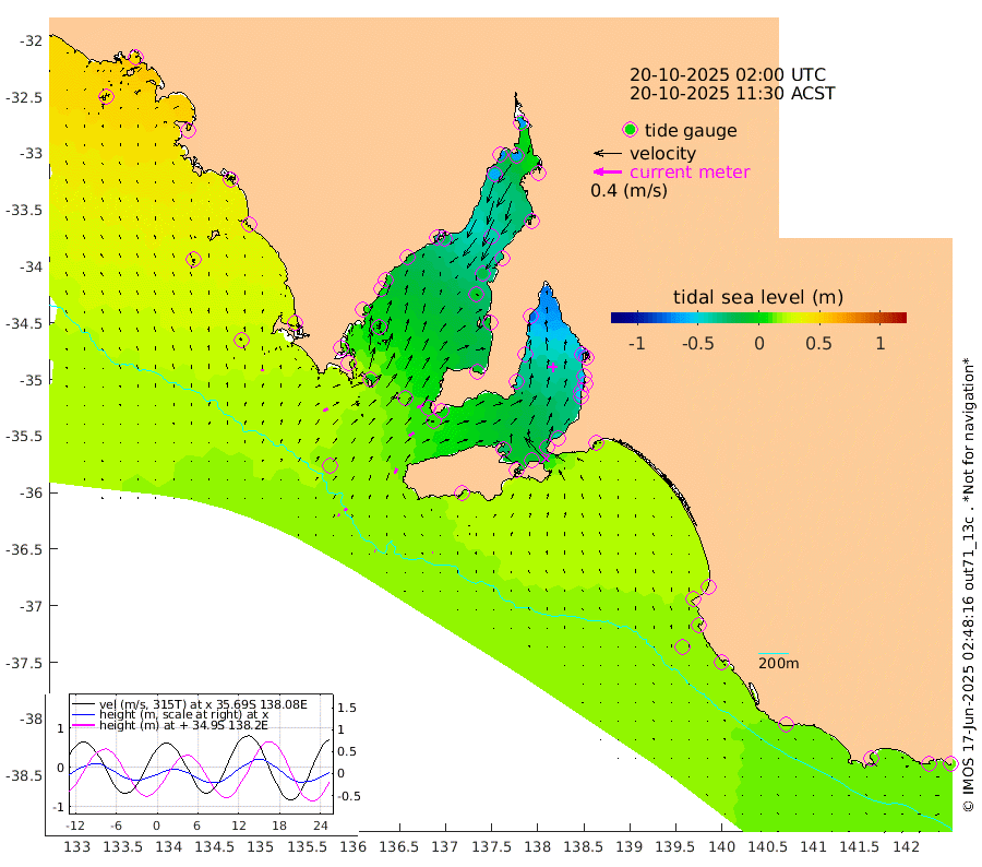 1cm/s -69T +10cm/s rms + 5cm/s 114T. SAM1DS 520m 7cm/s 66T +13cm/s rms + 5cm/s -36T. SAM2CP 100m 4cm/s 105T +21cm/s rms + 18cm/s 142T. SAM3MS 168m 2cm/s -98T +22cm/s rms + 0cm/s -30T. SAM4CY 117m 3cm/s 1T +23cm/s rms + 2cm/s 99T. SAM5CB 94m 8cm/s 58T +8cm/s rms + 3cm/s -172T. SAM6IS 83m 2cm/s 121T +11cm/s rms + 7cm/s 150T. SAM7DS 519m 10cm/s 66T +10cm/s rms + 2cm/s 87T. SAM8SG 47m 7cm/s 21T +20cm/s rms + 12cm/s -168T. NRSKAI 101m 11cm Warrnambool 13cm Port Fairy 14cm Portland 15cm Port Macdonnell 15cm Beachport 18cm Cape Rabelais (off) 17cm Robe 20cm Cape Jaffa 20cm Kingston 16cm Victor Harbor 18cm Vivonne Bay -26cm Kingscote -20cm American River -11cm Penneshaw -21cm Cape Jervis -38cm Second Valley -50cm Port Noarlunga -52cm Port Stanvac -54cm Brighton -54cm Glenelg -64cm Port Adelaide (Outer Harbor) -79cm Angus Inlet (Garden Island) -76cm Ardrossan -42cm Port Vincent -44cm Port Giles 7cm Stenhouse Bay 8cm Althorpe Island 10cm Pondalowie Bay -5cm Point Turton -4cm Port Victoria -7cm Cape Elizabeth -17cm Tiparra Reef Light -31cm Wallaroo -39cm Middle Bank -1cm Port Broughton -60cm Port Pirie -67cm Red Cliff Point (Beacon 5) -64cm Port Bonython -68cm Whyalla -61cm Western Shoal Beacon -34cm Franklin Harbor -22cm Franklin Harbor Entrance Beacon -9cm Arno Bay -1cm Port Neill 4cm Cape Hardy 10cm Tumby Bay 6cm Reevesby Island 14cm Port Lincoln 19cm Taylors Landing 3cm Whalers Bay 13cm Wedge Island Mooring 17cm Shelf Edge Mooring 28cm Coffin Bay Entrance Beacon 23cm Greenly Island 31cm Elliston 33cm Pearson Island 24cm Venus Bay 49cm Blanche Port (Streaky Bay) 47cm Thevenard 45cm St Francis Island