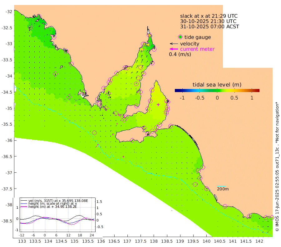 0cm/s -57T +10cm/s rms + 5cm/s 114T. SAM1DS 520m 2cm/s -87T +13cm/s rms + 5cm/s -36T. SAM2CP 100m 5cm/s -52T +21cm/s rms + 18cm/s 142T. SAM3MS 168m 7cm/s -44T +22cm/s rms + 0cm/s -30T. SAM4CY 117m 1cm/s -38T +23cm/s rms + 2cm/s 99T. SAM5CB 94m 4cm/s 20T +8cm/s rms + 3cm/s -172T. SAM6IS 83m 2cm/s -49T +11cm/s rms + 7cm/s 150T. SAM7DS 519m 11cm/s -14T +10cm/s rms + 2cm/s 87T. SAM8SG 47m 7cm/s 2T +20cm/s rms + 12cm/s -168T. NRSKAI 101m 16cm Warrnambool 15cm Port Fairy 16cm Portland 17cm Port Macdonnell 17cm Beachport 18cm Cape Rabelais (off) 15cm Robe 19cm Cape Jaffa 17cm Kingston 19cm Victor Harbor 15cm Vivonne Bay 24cm Kingscote 23cm American River 24cm Penneshaw 22cm Cape Jervis 30cm Second Valley 26cm Port Noarlunga 26cm Port Stanvac 29cm Brighton 30cm Glenelg 29cm Port Adelaide (Outer Harbor) 31cm Angus Inlet (Garden Island) 30cm Ardrossan 24cm Port Vincent 26cm Port Giles 17cm Stenhouse Bay 22cm Althorpe Island 15cm Pondalowie Bay 18cm Point Turton 18cm Port Victoria 21cm Cape Elizabeth 24cm Tiparra Reef Light 29cm Wallaroo 33cm Middle Bank 20cm Port Broughton 45cm Port Pirie 53cm Red Cliff Point (Beacon 5) 42cm Port Bonython 46cm Whyalla 43cm Western Shoal Beacon 25cm Franklin Harbor 28cm Franklin Harbor Entrance Beacon 24cm Arno Bay 27cm Port Neill 24cm Cape Hardy 24cm Tumby Bay 16cm Reevesby Island 18cm Port Lincoln 17cm Taylors Landing 19cm Whalers Bay 18cm Wedge Island Mooring 18cm Shelf Edge Mooring 15cm Coffin Bay Entrance Beacon 15cm Greenly Island 17cm Elliston 15cm Pearson Island 11cm Venus Bay 12cm Blanche Port (Streaky Bay) 11cm Thevenard 12cm St Francis Island