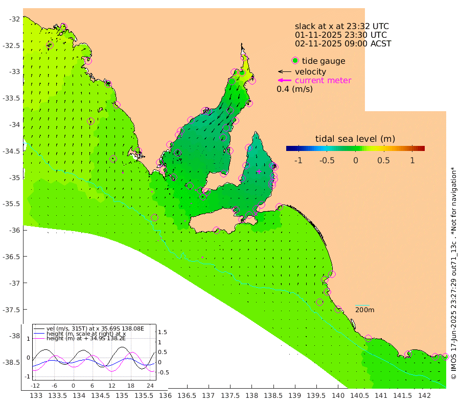 1cm/s -69T +10cm/s rms + 5cm/s 114T. SAM1DS 520m 3cm/s 60T +13cm/s rms + 5cm/s -36T. SAM2CP 100m 1cm/s -150T +21cm/s rms + 18cm/s 142T. SAM3MS 168m 5cm/s -46T +22cm/s rms + 0cm/s -30T. SAM4CY 117m 4cm/s 10T +23cm/s rms + 2cm/s 99T. SAM5CB 94m 1cm/s -20T +8cm/s rms + 3cm/s -172T. SAM6IS 83m 1cm/s -141T +11cm/s rms + 7cm/s 150T. SAM7DS 519m 3cm/s 41T +10cm/s rms + 2cm/s 87T. SAM8SG 47m 3cm/s 10T +20cm/s rms + 12cm/s -168T. NRSKAI 101m 9cm Warrnambool 10cm Port Fairy 11cm Portland 12cm Port Macdonnell 12cm Beachport 13cm Cape Rabelais (off) 11cm Robe 15cm Cape Jaffa 14cm Kingston 12cm Victor Harbor 13cm Vivonne Bay -18cm Kingscote -11cm American River -8cm Penneshaw -12cm Cape Jervis -16cm Second Valley -32cm Port Noarlunga -33cm Port Stanvac -32cm Brighton -33cm Glenelg -39cm Port Adelaide (Outer Harbor) -35cm Angus Inlet (Garden Island) -52cm Ardrossan -39cm Port Vincent -34cm Port Giles 0cm Stenhouse Bay 4cm Althorpe Island 3cm Pondalowie Bay -11cm Point Turton -9cm Port Victoria -9cm Cape Elizabeth -12cm Tiparra Reef Light -7cm Wallaroo -9cm Middle Bank 21cm Port Broughton 21cm Port Pirie 26cm Red Cliff Point (Beacon 5) 7cm Port Bonython 6cm Whyalla 4cm Western Shoal Beacon -15cm Franklin Harbor -16cm Franklin Harbor Entrance Beacon -14cm Arno Bay -14cm Port Neill -9cm Cape Hardy -4cm Tumby Bay -9cm Reevesby Island -2cm Port Lincoln 5cm Taylors Landing -4cm Whalers Bay 5cm Wedge Island Mooring 14cm Shelf Edge Mooring 14cm Coffin Bay Entrance Beacon 15cm Greenly Island 19cm Elliston 19cm Pearson Island 10cm Venus Bay 19cm Blanche Port (Streaky Bay) 19cm Thevenard 19cm St Francis Island