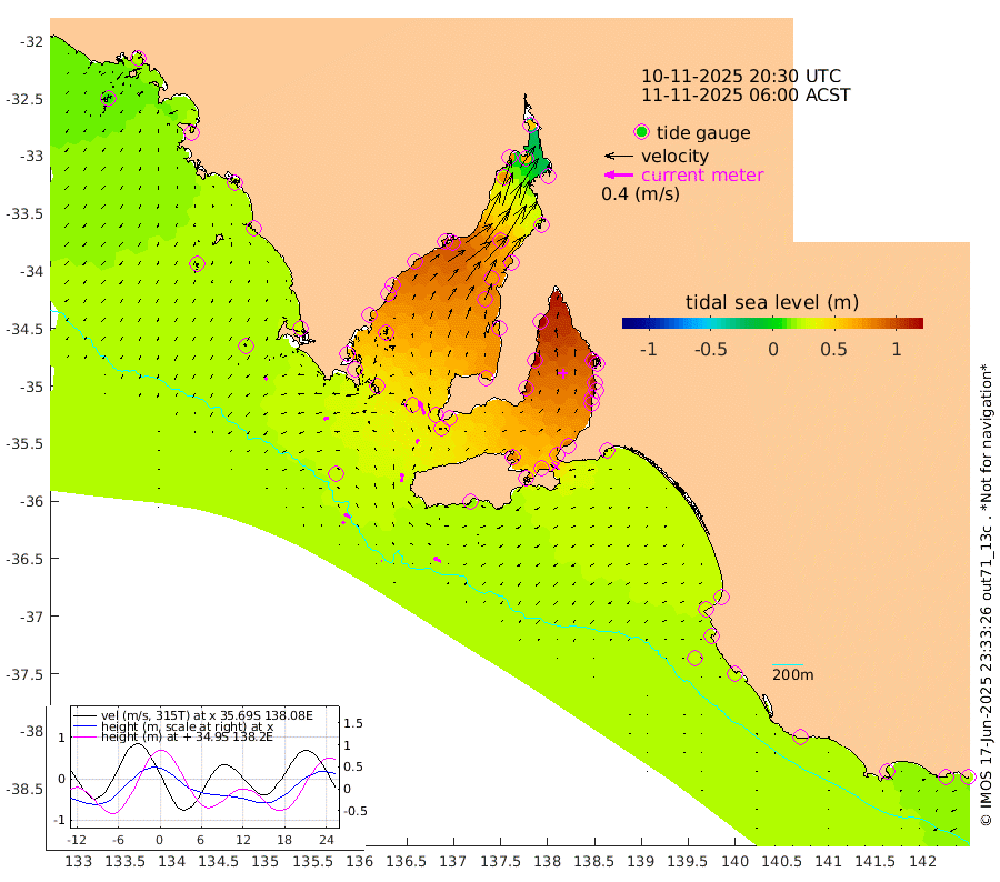 1cm/s -50T +10cm/s rms + 5cm/s 114T. SAM1DS 520m 8cm/s -101T +13cm/s rms + 5cm/s -36T. SAM2CP 100m 10cm/s -56T +21cm/s rms + 18cm/s 142T. SAM3MS 168m 11cm/s -60T +22cm/s rms + 0cm/s -30T. SAM4CY 117m 4cm/s -134T +23cm/s rms + 2cm/s 99T. SAM5CB 94m 6cm/s 25T +8cm/s rms + 3cm/s -172T. SAM6IS 83m 4cm/s -47T +11cm/s rms + 7cm/s 150T. SAM7DS 519m 20cm/s -21T +10cm/s rms + 2cm/s 87T. SAM8SG 47m 11cm/s 1T +20cm/s rms + 12cm/s -168T. NRSKAI 101m 21cm Warrnambool 22cm Port Fairy 22cm Portland 28cm Port Macdonnell 23cm Beachport 24cm Cape Rabelais (off) 23cm Robe 29cm Cape Jaffa 26cm Kingston 31cm Victor Harbor 19cm Vivonne Bay 77cm Kingscote 68cm American River 67cm Penneshaw 64cm Cape Jervis 84cm Second Valley 97cm Port Noarlunga 100cm Port Stanvac 102cm Brighton 105cm Glenelg 111cm Port Adelaide (Outer Harbor) 100cm Angus Inlet (Garden Island) 129cm Ardrossan 118cm Port Vincent 102cm Port Giles 44cm Stenhouse Bay 46cm Althorpe Island 38cm Pondalowie Bay 64cm Point Turton 64cm Port Victoria 72cm Cape Elizabeth 70cm Tiparra Reef Light 72cm Wallaroo 80cm Middle Bank 22cm Port Broughton 53cm Port Pirie 56cm Red Cliff Point (Beacon 5) 62cm Port Bonython 73cm Whyalla 72cm Western Shoal Beacon 82cm Franklin Harbor 90cm Franklin Harbor Entrance Beacon 79cm Arno Bay 81cm Port Neill 72cm Cape Hardy 67cm Tumby Bay 59cm Reevesby Island 54cm Port Lincoln 41cm Taylors Landing 56cm Whalers Bay 44cm Wedge Island Mooring 26cm Shelf Edge Mooring 28cm Coffin Bay Entrance Beacon 22cm Greenly Island 26cm Elliston 20cm Pearson Island 25cm Venus Bay 27cm Blanche Port (Streaky Bay) 22cm Thevenard 10cm St Francis Island