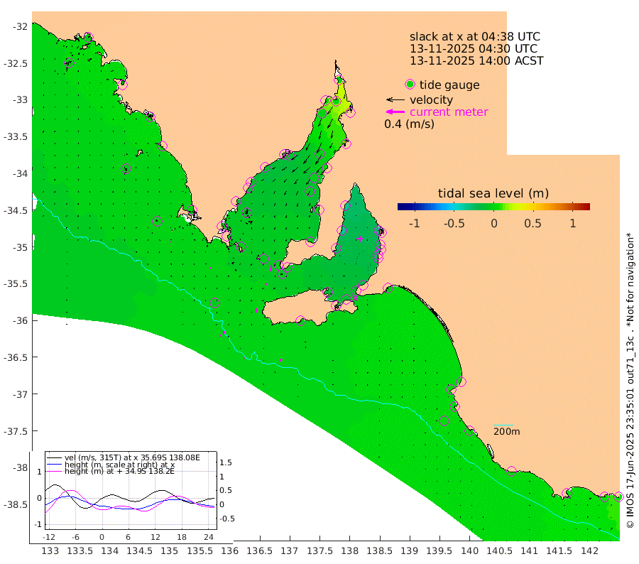 1cm/s -67T +10cm/s rms + 5cm/s 114T. SAM1DS 520m 2cm/s 161T +13cm/s rms + 5cm/s -36T. SAM2CP 100m 6cm/s 176T +21cm/s rms + 18cm/s 142T. SAM3MS 168m 6cm/s -127T +22cm/s rms + 0cm/s -30T. SAM4CY 117m 1cm/s 146T +23cm/s rms + 2cm/s 99T. SAM5CB 94m 3cm/s -174T +8cm/s rms + 3cm/s -172T. SAM6IS 83m 3cm/s 168T +11cm/s rms + 7cm/s 150T. SAM7DS 519m 13cm/s -174T +10cm/s rms + 2cm/s 87T. SAM8SG 47m 9cm/s -174T +20cm/s rms + 12cm/s -168T. NRSKAI 101m 7cm Warrnambool 4cm Port Fairy 4cm Portland 1cm Port Macdonnell 1cm Beachport 1cm Cape Rabelais (off) 3cm Robe 3cm Cape Jaffa 2cm Kingston -3cm Victor Harbor -5cm Vivonne Bay -15cm Kingscote -15cm American River -14cm Penneshaw -14cm Cape Jervis -22cm Second Valley -25cm Port Noarlunga -24cm Port Stanvac -25cm Brighton -25cm Glenelg -28cm Port Adelaide (Outer Harbor) -24cm Angus Inlet (Garden Island) -37cm Ardrossan -35cm Port Vincent -24cm Port Giles -5cm Stenhouse Bay -5cm Althorpe Island -1cm Pondalowie Bay -1cm Point Turton 2cm Port Victoria -4cm Cape Elizabeth -2cm Tiparra Reef Light 0cm Wallaroo -3cm Middle Bank 23cm Port Broughton 9cm Port Pirie -1cm Red Cliff Point (Beacon 5) 2cm Port Bonython 0cm Whyalla -3cm Western Shoal Beacon -2cm Franklin Harbor -11cm Franklin Harbor Entrance Beacon -10cm Arno Bay -12cm Port Neill -13cm Cape Hardy -12cm Tumby Bay -9cm Reevesby Island -7cm Port Lincoln -6cm Taylors Landing -3cm Whalers Bay -4cm Wedge Island Mooring -4cm Shelf Edge Mooring -2cm Coffin Bay Entrance Beacon -2cm Greenly Island -3cm Elliston -4cm Pearson Island 0cm Venus Bay 0cm Blanche Port (Streaky Bay) 0cm Thevenard -2cm St Francis Island