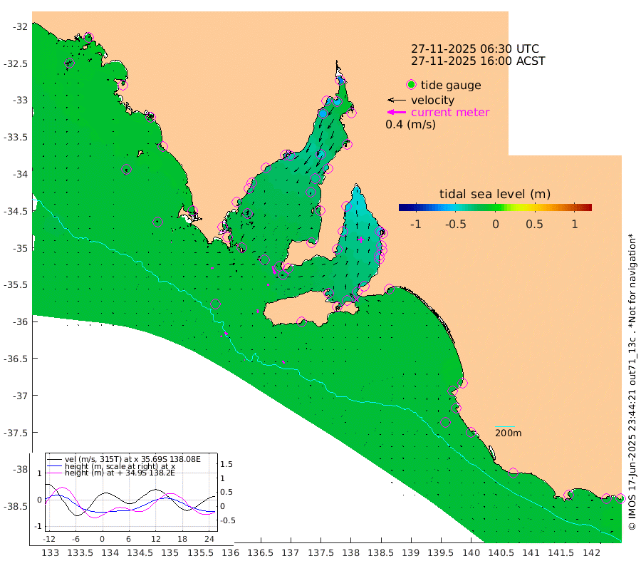 0cm/s -39T +10cm/s rms + 5cm/s 114T. SAM1DS 520m 5cm/s 85T +13cm/s rms + 5cm/s -36T. SAM2CP 100m 7cm/s 130T +21cm/s rms + 18cm/s 142T. SAM3MS 168m 7cm/s 155T +22cm/s rms + 0cm/s -30T. SAM4CY 117m 1cm/s 79T +23cm/s rms + 2cm/s 99T. SAM5CB 94m 5cm/s 89T +8cm/s rms + 3cm/s -172T. SAM6IS 83m 3cm/s 123T +11cm/s rms + 7cm/s 150T. SAM7DS 519m 17cm/s 159T +10cm/s rms + 2cm/s 87T. SAM8SG 47m 7cm/s 175T +20cm/s rms + 12cm/s -168T. NRSKAI 101m -13cm Warrnambool -15cm Port Fairy -14cm Portland -15cm Port Macdonnell -14cm Beachport -14cm Cape Rabelais (off) -13cm Robe -16cm Cape Jaffa -13cm Kingston -19cm Victor Harbor -14cm Vivonne Bay -31cm Kingscote -32cm American River -29cm Penneshaw -31cm Cape Jervis -39cm Second Valley -41cm Port Noarlunga -42cm Port Stanvac -43cm Brighton -40cm Glenelg -46cm Port Adelaide (Outer Harbor) -48cm Angus Inlet (Garden Island) -51cm Ardrossan -43cm Port Vincent -37cm Port Giles -14cm Stenhouse Bay -20cm Althorpe Island -13cm Pondalowie Bay -22cm Point Turton -22cm Port Victoria -30cm Cape Elizabeth -31cm Tiparra Reef Light -39cm Wallaroo -46cm Middle Bank -9cm Port Broughton -57cm Port Pirie -71cm Red Cliff Point (Beacon 5) -55cm Port Bonython -62cm Whyalla -61cm Western Shoal Beacon -36cm Franklin Harbor -39cm Franklin Harbor Entrance Beacon -32cm Arno Bay -29cm Port Neill -32cm Cape Hardy -30cm Tumby Bay -25cm Reevesby Island -20cm Port Lincoln -17cm Taylors Landing -22cm Whalers Bay -18cm Wedge Island Mooring -16cm Shelf Edge Mooring -14cm Coffin Bay Entrance Beacon -15cm Greenly Island -15cm Elliston -12cm Pearson Island -10cm Venus Bay -12cm Blanche Port (Streaky Bay) -10cm Thevenard -18cm St Francis Island