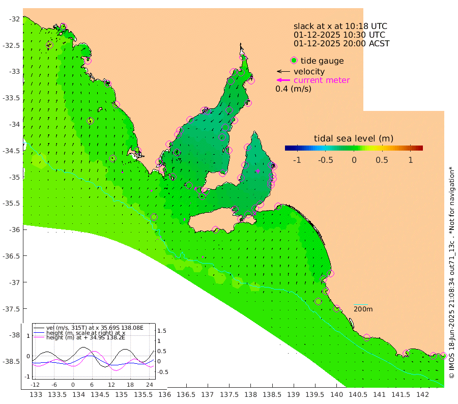 1cm/s 97T +10cm/s rms + 5cm/s 114T. SAM1DS 520m 5cm/s 46T +13cm/s rms + 5cm/s -36T. SAM2CP 100m 2cm/s 46T +21cm/s rms + 18cm/s 142T. SAM3MS 168m 4cm/s 60T +22cm/s rms + 0cm/s -30T. SAM4CY 117m 4cm/s 1T +23cm/s rms + 2cm/s 99T. SAM5CB 94m 1cm/s -74T +8cm/s rms + 3cm/s -172T. SAM6IS 83m 1cm/s -5T +11cm/s rms + 7cm/s 150T. SAM7DS 519m 10cm/s 28T +10cm/s rms + 2cm/s 87T. SAM8SG 47m 7cm/s 14T +20cm/s rms + 12cm/s -168T. NRSKAI 101m 11cm Warrnambool 11cm Port Fairy 12cm Portland 11cm Port Macdonnell 14cm Beachport 13cm Cape Rabelais (off) 12cm Robe 8cm Cape Jaffa 9cm Kingston 11cm Victor Harbor 18cm Vivonne Bay -15cm Kingscote -9cm American River -6cm Penneshaw -9cm Cape Jervis -17cm Second Valley -24cm Port Noarlunga -26cm Port Stanvac -27cm Brighton -28cm Glenelg -31cm Port Adelaide (Outer Harbor) -24cm Angus Inlet (Garden Island) -37cm Ardrossan -33cm Port Vincent -25cm Port Giles 3cm Stenhouse Bay 1cm Althorpe Island 3cm Pondalowie Bay -11cm Point Turton -13cm Port Victoria -17cm Cape Elizabeth -10cm Tiparra Reef Light -12cm Wallaroo -12cm Middle Bank -8cm Port Broughton 4cm Port Pirie -4cm Red Cliff Point (Beacon 5) 5cm Port Bonython -3cm Whyalla -7cm Western Shoal Beacon -24cm Franklin Harbor -18cm Franklin Harbor Entrance Beacon -11cm Arno Bay -12cm Port Neill -9cm Cape Hardy -6cm Tumby Bay -1cm Reevesby Island 2cm Port Lincoln 8cm Taylors Landing -6cm Whalers Bay 5cm Wedge Island Mooring 15cm Shelf Edge Mooring 12cm Coffin Bay Entrance Beacon 15cm Greenly Island 12cm Elliston 20cm Pearson Island 6cm Venus Bay 11cm Blanche Port (Streaky Bay) 13cm Thevenard 19cm St Francis Island