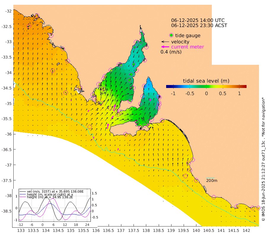 1cm/s 60T +10cm/s rms + 5cm/s 114T. SAM1DS 520m 10cm/s 33T +13cm/s rms + 5cm/s -36T. SAM2CP 100m 9cm/s 4T +21cm/s rms + 18cm/s 142T. SAM3MS 168m 10cm/s 16T +22cm/s rms + 0cm/s -30T. SAM4CY 117m 6cm/s -5T +23cm/s rms + 2cm/s 99T. SAM5CB 94m 18cm/s 41T +8cm/s rms + 3cm/s -172T. SAM6IS 83m 4cm/s -8T +11cm/s rms + 7cm/s 150T. SAM7DS 519m 35cm/s 17T +10cm/s rms + 2cm/s 87T. SAM8SG 47m 27cm/s 11T +20cm/s rms + 12cm/s -168T. NRSKAI 101m 47cm Warrnambool 44cm Port Fairy 46cm Portland 40cm Port Macdonnell 47cm Beachport 47cm Cape Rabelais (off) 45cm Robe 45cm Cape Jaffa 44cm Kingston 47cm Victor Harbor 52cm Vivonne Bay -7cm Kingscote -7cm American River 9cm Penneshaw -3cm Cape Jervis -21cm Second Valley -38cm Port Noarlunga -41cm Port Stanvac -43cm Brighton -47cm Glenelg -55cm Port Adelaide (Outer Harbor) -62cm Angus Inlet (Garden Island) -72cm Ardrossan -50cm Port Vincent -34cm Port Giles 26cm Stenhouse Bay 27cm Althorpe Island 25cm Pondalowie Bay 11cm Point Turton 6cm Port Victoria 5cm Cape Elizabeth 3cm Tiparra Reef Light -6cm Wallaroo -5cm Middle Bank -29cm Port Broughton -15cm Port Pirie -20cm Red Cliff Point (Beacon 5) -17cm Port Bonython -18cm Whyalla -17cm Western Shoal Beacon -15cm Franklin Harbor 10cm Franklin Harbor Entrance Beacon 18cm Arno Bay 22cm Port Neill 28cm Cape Hardy 34cm Tumby Bay 34cm Reevesby Island 41cm Port Lincoln 48cm Taylors Landing 18cm Whalers Bay 37cm Wedge Island Mooring 49cm Shelf Edge Mooring 52cm Coffin Bay Entrance Beacon 52cm Greenly Island 54cm Elliston 53cm Pearson Island 35cm Venus Bay 63cm Blanche Port (Streaky Bay) 65cm Thevenard 62cm St Francis Island