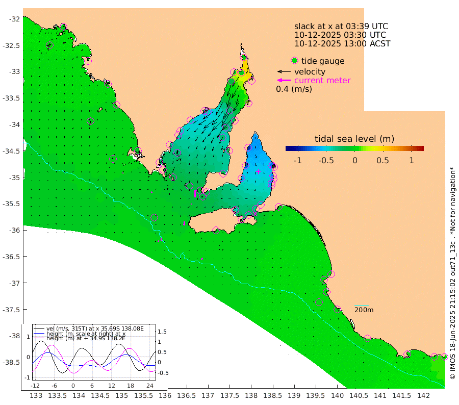 1cm/s -61T +10cm/s rms + 5cm/s 114T. SAM1DS 520m 4cm/s 112T +13cm/s rms + 5cm/s -36T. SAM2CP 100m 9cm/s 165T +21cm/s rms + 18cm/s 142T. SAM3MS 168m 6cm/s -145T +22cm/s rms + 0cm/s -30T. SAM4CY 117m 2cm/s 45T +23cm/s rms + 2cm/s 99T. SAM5CB 94m 3cm/s 161T +8cm/s rms + 3cm/s -172T. SAM6IS 83m 4cm/s 164T +11cm/s rms + 7cm/s 150T. SAM7DS 519m 20cm/s 178T +10cm/s rms + 2cm/s 87T. SAM8SG 47m 13cm/s -175T +20cm/s rms + 12cm/s -168T. NRSKAI 101m 6cm Warrnambool 4cm Port Fairy 4cm Portland -1cm Port Macdonnell 0cm Beachport 1cm Cape Rabelais (off) 3cm Robe 2cm Cape Jaffa 1cm Kingston -7cm Victor Harbor -5cm Vivonne Bay -41cm Kingscote -38cm American River -36cm Penneshaw -36cm Cape Jervis -51cm Second Valley -63cm Port Noarlunga -65cm Port Stanvac -66cm Brighton -68cm Glenelg -75cm Port Adelaide (Outer Harbor) -65cm Angus Inlet (Garden Island) -93cm Ardrossan -82cm Port Vincent -67cm Port Giles -16cm Stenhouse Bay -16cm Althorpe Island -10cm Pondalowie Bay -22cm Point Turton -21cm Port Victoria -28cm Cape Elizabeth -25cm Tiparra Reef Light -20cm Wallaroo -28cm Middle Bank 30cm Port Broughton 9cm Port Pirie -4cm Red Cliff Point (Beacon 5) -7cm Port Bonython -13cm Whyalla -18cm Western Shoal Beacon -30cm Franklin Harbor -44cm Franklin Harbor Entrance Beacon -41cm Arno Bay -42cm Port Neill -38cm Cape Hardy -35cm Tumby Bay -29cm Reevesby Island -24cm Port Lincoln -17cm Taylors Landing -21cm Whalers Bay -15cm Wedge Island Mooring -5cm Shelf Edge Mooring -5cm Coffin Bay Entrance Beacon -3cm Greenly Island -4cm Elliston -3cm Pearson Island -3cm Venus Bay -1cm Blanche Port (Streaky Bay) -1cm Thevenard 4cm St Francis Island