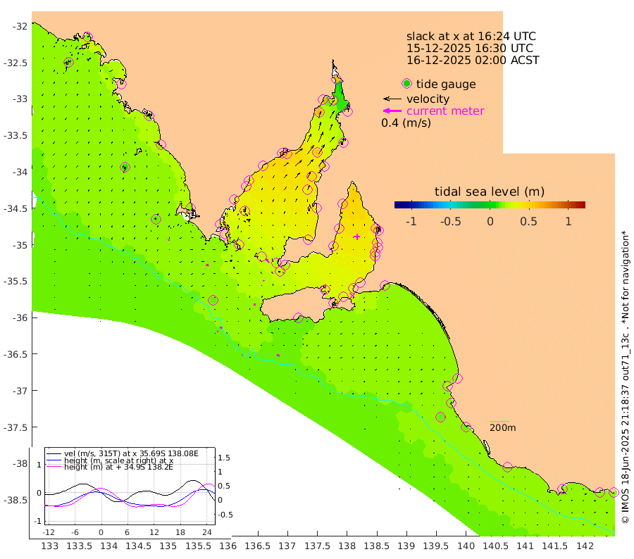1cm/s -115T +10cm/s rms + 5cm/s 114T. SAM1DS 520m 6cm/s -102T +13cm/s rms + 5cm/s -36T. SAM2CP 100m 5cm/s -61T +21cm/s rms + 18cm/s 142T. SAM3MS 168m 6cm/s -60T +22cm/s rms + 0cm/s -30T. SAM4CY 117m 2cm/s -143T +23cm/s rms + 2cm/s 99T. SAM5CB 94m 2cm/s -13T +8cm/s rms + 3cm/s -172T. SAM6IS 83m 2cm/s -64T +11cm/s rms + 7cm/s 150T. SAM7DS 519m 10cm/s -40T +10cm/s rms + 2cm/s 87T. SAM8SG 47m 3cm/s -13T +20cm/s rms + 12cm/s -168T. NRSKAI 101m 18cm Warrnambool 17cm Port Fairy 17cm Portland 16cm Port Macdonnell 14cm Beachport 15cm Cape Rabelais (off) 16cm Robe 20cm Cape Jaffa 16cm Kingston 20cm Victor Harbor 12cm Vivonne Bay 39cm Kingscote 34cm American River 31cm Penneshaw 33cm Cape Jervis 40cm Second Valley 45cm Port Noarlunga 46cm Port Stanvac 46cm Brighton 47cm Glenelg 50cm Port Adelaide (Outer Harbor) 47cm Angus Inlet (Garden Island) 56cm Ardrossan 46cm Port Vincent 44cm Port Giles 22cm Stenhouse Bay 26cm Althorpe Island 20cm Pondalowie Bay 37cm Point Turton 34cm Port Victoria 38cm Cape Elizabeth 45cm Tiparra Reef Light 50cm Wallaroo 54cm Middle Bank 22cm Port Broughton 54cm Port Pirie 56cm Red Cliff Point (Beacon 5) 48cm Port Bonython 60cm Whyalla 64cm Western Shoal Beacon 52cm Franklin Harbor 52cm Franklin Harbor Entrance Beacon 43cm Arno Bay 40cm Port Neill 40cm Cape Hardy 36cm Tumby Bay 36cm Reevesby Island 29cm Port Lincoln 21cm Taylors Landing 33cm Whalers Bay 24cm Wedge Island Mooring 15cm Shelf Edge Mooring 18cm Coffin Bay Entrance Beacon 13cm Greenly Island 17cm Elliston 8cm Pearson Island 18cm Venus Bay 19cm Blanche Port (Streaky Bay) 18cm Thevenard 12cm St Francis Island