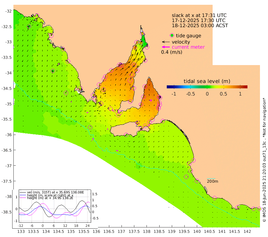 1cm/s -104T +10cm/s rms + 5cm/s 114T. SAM1DS 520m 8cm/s -107T +13cm/s rms + 5cm/s -36T. SAM2CP 100m 7cm/s -69T +21cm/s rms + 18cm/s 142T. SAM3MS 168m 10cm/s -72T +22cm/s rms + 0cm/s -30T. SAM4CY 117m 4cm/s -148T +23cm/s rms + 2cm/s 99T. SAM5CB 94m 2cm/s -32T +8cm/s rms + 3cm/s -172T. SAM6IS 83m 2cm/s -67T +11cm/s rms + 7cm/s 150T. SAM7DS 519m 13cm/s -43T +10cm/s rms + 2cm/s 87T. SAM8SG 47m 4cm/s -12T +20cm/s rms + 12cm/s -168T. NRSKAI 101m 22cm Warrnambool 21cm Port Fairy 21cm Portland 23cm Port Macdonnell 18cm Beachport 18cm Cape Rabelais (off) 20cm Robe 25cm Cape Jaffa 22cm Kingston 25cm Victor Harbor 12cm Vivonne Bay 63cm Kingscote 54cm American River 50cm Penneshaw 52cm Cape Jervis 66cm Second Valley 78cm Port Noarlunga 79cm Port Stanvac 79cm Brighton 81cm Glenelg 87cm Port Adelaide (Outer Harbor) 80cm Angus Inlet (Garden Island) 100cm Ardrossan 90cm Port Vincent 79cm Port Giles 34cm Stenhouse Bay 37cm Althorpe Island 30cm Pondalowie Bay 59cm Point Turton 56cm Port Victoria 64cm Cape Elizabeth 66cm Tiparra Reef Light 72cm Wallaroo 77cm Middle Bank 30cm Port Broughton 63cm Port Pirie 65cm Red Cliff Point (Beacon 5) 63cm Port Bonython 76cm Whyalla 79cm Western Shoal Beacon 81cm Franklin Harbor 80cm Franklin Harbor Entrance Beacon 67cm Arno Bay 65cm Port Neill 60cm Cape Hardy 54cm Tumby Bay 53cm Reevesby Island 43cm Port Lincoln 31cm Taylors Landing 48cm Whalers Bay 35cm Wedge Island Mooring 18cm Shelf Edge Mooring 23cm Coffin Bay Entrance Beacon 15cm Greenly Island 19cm Elliston 10cm Pearson Island 23cm Venus Bay 23cm Blanche Port (Streaky Bay) 19cm Thevenard 9cm St Francis Island