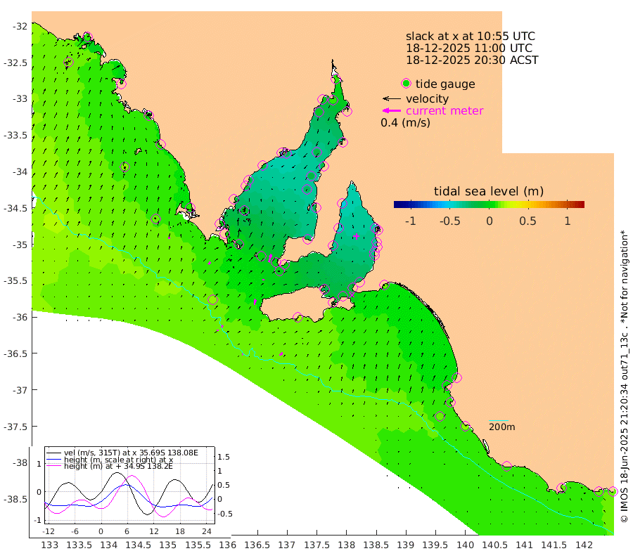 1cm/s 94T +10cm/s rms + 5cm/s 114T. SAM1DS 520m 6cm/s 39T +13cm/s rms + 5cm/s -36T. SAM2CP 100m 5cm/s 12T +21cm/s rms + 18cm/s 142T. SAM3MS 168m 9cm/s 52T +22cm/s rms + 0cm/s -30T. SAM4CY 117m 5cm/s 9T +23cm/s rms + 2cm/s 99T. SAM5CB 94m 3cm/s -10T +8cm/s rms + 3cm/s -172T. SAM6IS 83m 3cm/s -7T +11cm/s rms + 7cm/s 150T. SAM7DS 519m 18cm/s 17T +10cm/s rms + 2cm/s 87T. SAM8SG 47m 12cm/s 10T +20cm/s rms + 12cm/s -168T. NRSKAI 101m 13cm Warrnambool 12cm Port Fairy 13cm Portland 8cm Port Macdonnell 15cm Beachport 14cm Cape Rabelais (off) 11cm Robe 6cm Cape Jaffa 9cm Kingston 11cm Victor Harbor 20cm Vivonne Bay -22cm Kingscote -16cm American River -11cm Penneshaw -13cm Cape Jervis -23cm Second Valley -33cm Port Noarlunga -34cm Port Stanvac -35cm Brighton -37cm Glenelg -40cm Port Adelaide (Outer Harbor) -29cm Angus Inlet (Garden Island) -50cm Ardrossan -47cm Port Vincent -35cm Port Giles -3cm Stenhouse Bay -3cm Althorpe Island -3cm Pondalowie Bay -19cm Point Turton -21cm Port Victoria -23cm Cape Elizabeth -17cm Tiparra Reef Light -18cm Wallaroo -16cm Middle Bank -27cm Port Broughton 5cm Port Pirie 10cm Red Cliff Point (Beacon 5) 11cm Port Bonython -1cm Whyalla -7cm Western Shoal Beacon -31cm Franklin Harbor -20cm Franklin Harbor Entrance Beacon -14cm Arno Bay -13cm Port Neill -13cm Cape Hardy -10cm Tumby Bay -6cm Reevesby Island -2cm Port Lincoln 7cm Taylors Landing -13cm Whalers Bay 2cm Wedge Island Mooring 16cm Shelf Edge Mooring 10cm Coffin Bay Entrance Beacon 15cm Greenly Island 10cm Elliston 16cm Pearson Island 0cm Venus Bay 4cm Blanche Port (Streaky Bay) 9cm Thevenard 15cm St Francis Island