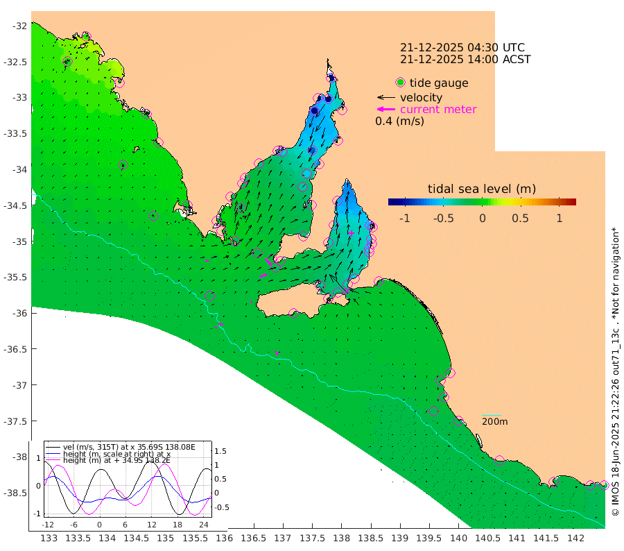 1cm/s 59T +10cm/s rms + 5cm/s 114T. SAM1DS 520m 7cm/s 79T +13cm/s rms + 5cm/s -36T. SAM2CP 100m 9cm/s 107T +21cm/s rms + 18cm/s 142T. SAM3MS 168m 10cm/s 142T +22cm/s rms + 0cm/s -30T. SAM4CY 117m 1cm/s 75T +23cm/s rms + 2cm/s 99T. SAM5CB 94m 16cm/s 68T +8cm/s rms + 3cm/s -172T. SAM6IS 83m 4cm/s 110T +11cm/s rms + 7cm/s 150T. SAM7DS 519m 18cm/s 132T +10cm/s rms + 2cm/s 87T. SAM8SG 47m 4cm/s 142T +20cm/s rms + 12cm/s -168T. NRSKAI 101m -26cm Warrnambool -24cm Port Fairy -22cm Portland -22cm Port Macdonnell -20cm Beachport -20cm Cape Rabelais (off) -18cm Robe -18cm Cape Jaffa -17cm Kingston -21cm Victor Harbor -16cm Vivonne Bay -37cm Kingscote -40cm American River -31cm Penneshaw -38cm Cape Jervis -51cm Second Valley -52cm Port Noarlunga -53cm Port Stanvac -53cm Brighton -52cm Glenelg -59cm Port Adelaide (Outer Harbor) -81cm Angus Inlet (Garden Island) -63cm Ardrossan -39cm Port Vincent -41cm Port Giles -13cm Stenhouse Bay -20cm Althorpe Island -14cm Pondalowie Bay -27cm Point Turton -24cm Port Victoria -34cm Cape Elizabeth -49cm Tiparra Reef Light -70cm Wallaroo -80cm Middle Bank -41cm Port Broughton -137cm Port Pirie -155cm Red Cliff Point (Beacon 5) -137cm Port Bonython -135cm Whyalla -122cm Western Shoal Beacon -57cm Franklin Harbor -47cm Franklin Harbor Entrance Beacon -34cm Arno Bay -28cm Port Neill -26cm Cape Hardy -21cm Tumby Bay -21cm Reevesby Island -12cm Port Lincoln -11cm Taylors Landing -19cm Whalers Bay -17cm Wedge Island Mooring -18cm Shelf Edge Mooring -9cm Coffin Bay Entrance Beacon -10cm Greenly Island -5cm Elliston -5cm Pearson Island -4cm Venus Bay 10cm Blanche Port (Streaky Bay) 11cm Thevenard 3cm St Francis Island