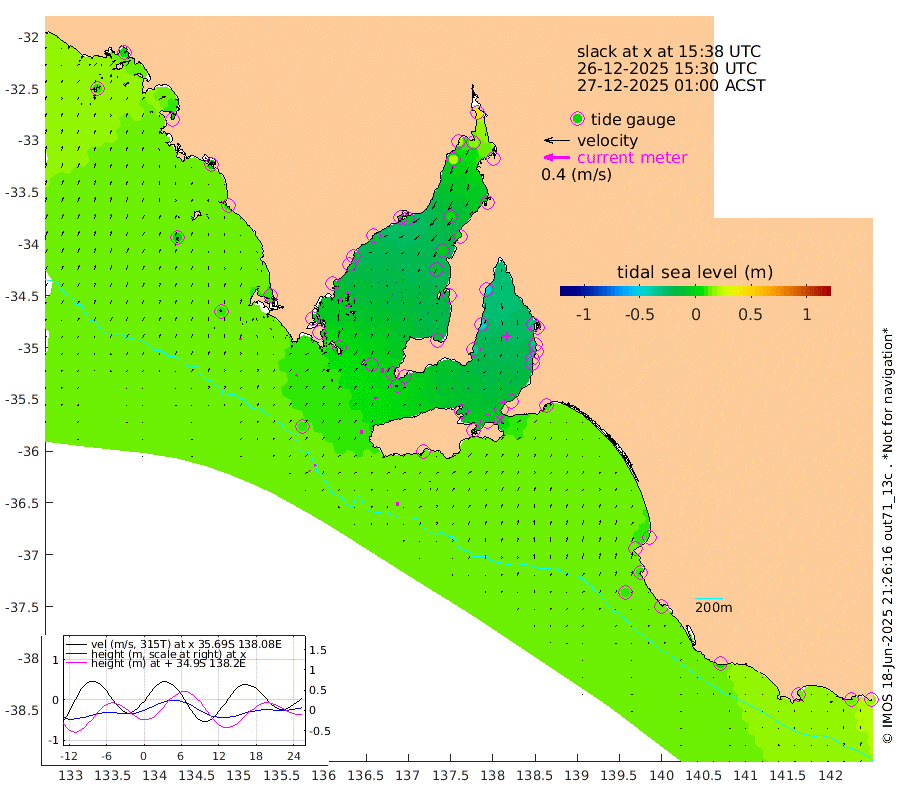 0cm/s -135T +10cm/s rms + 5cm/s 114T. SAM1DS 520m 2cm/s 25T +13cm/s rms + 5cm/s -36T. SAM2CP 100m 3cm/s -16T +21cm/s rms + 18cm/s 142T. SAM3MS 168m 5cm/s 18T +22cm/s rms + 0cm/s -30T. SAM4CY 117m 2cm/s 23T +23cm/s rms + 2cm/s 99T. SAM5CB 94m 4cm/s 40T +8cm/s rms + 3cm/s -172T. SAM6IS 83m 2cm/s -43T +11cm/s rms + 7cm/s 150T. SAM7DS 519m 7cm/s 2T +10cm/s rms + 2cm/s 87T. SAM8SG 47m 5cm/s 0T +20cm/s rms + 12cm/s -168T. NRSKAI 101m 17cm Warrnambool 15cm Port Fairy 14cm Portland 7cm Port Macdonnell 12cm Beachport 11cm Cape Rabelais (off) 11cm Robe 11cm Cape Jaffa 11cm Kingston 11cm Victor Harbor 12cm Vivonne Bay -15cm Kingscote -14cm American River -11cm Penneshaw -11cm Cape Jervis -17cm Second Valley -29cm Port Noarlunga -31cm Port Stanvac -32cm Brighton -35cm Glenelg -37cm Port Adelaide (Outer Harbor) -32cm Angus Inlet (Garden Island) -49cm Ardrossan -48cm Port Vincent -34cm Port Giles -6cm Stenhouse Bay -2cm Althorpe Island -4cm Pondalowie Bay -9cm Point Turton -14cm Port Victoria -10cm Cape Elizabeth -6cm Tiparra Reef Light 0cm Wallaroo 2cm Middle Bank -1cm Port Broughton 32cm Port Pirie 41cm Red Cliff Point (Beacon 5) 18cm Port Bonython 22cm Whyalla 22cm Western Shoal Beacon -5cm Franklin Harbor -6cm Franklin Harbor Entrance Beacon -11cm Arno Bay -14cm Port Neill -7cm Cape Hardy -5cm Tumby Bay -3cm Reevesby Island -3cm Port Lincoln 2cm Taylors Landing -7cm Whalers Bay 0cm Wedge Island Mooring 10cm Shelf Edge Mooring 8cm Coffin Bay Entrance Beacon 10cm Greenly Island 9cm Elliston 3cm Pearson Island 3cm Venus Bay 5cm Blanche Port (Streaky Bay) 7cm Thevenard 9cm St Francis Island