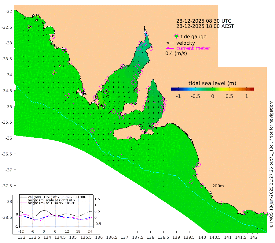 0cm/s 83T +10cm/s rms + 5cm/s 114T. SAM1DS 520m 5cm/s 53T +13cm/s rms + 5cm/s -36T. SAM2CP 100m 3cm/s 61T +21cm/s rms + 18cm/s 142T. SAM3MS 168m 4cm/s 97T +22cm/s rms + 0cm/s -30T. SAM4CY 117m 2cm/s -16T +23cm/s rms + 2cm/s 99T. SAM5CB 94m 5cm/s 52T +8cm/s rms + 3cm/s -172T. SAM6IS 83m 2cm/s 45T +11cm/s rms + 7cm/s 150T. SAM7DS 519m 11cm/s 44T +10cm/s rms + 2cm/s 87T. SAM8SG 47m 8cm/s 19T +20cm/s rms + 12cm/s -168T. NRSKAI 101m 4cm Warrnambool 4cm Port Fairy 5cm Portland 7cm Port Macdonnell 7cm Beachport 7cm Cape Rabelais (off) 7cm Robe 3cm Cape Jaffa 5cm Kingston 6cm Victor Harbor 10cm Vivonne Bay -5cm Kingscote -4cm American River 3cm Penneshaw -3cm Cape Jervis -9cm Second Valley -8cm Port Noarlunga -8cm Port Stanvac -11cm Brighton -8cm Glenelg -11cm Port Adelaide (Outer Harbor) -17cm Angus Inlet (Garden Island) -9cm Ardrossan -5cm Port Vincent -2cm Port Giles 9cm Stenhouse Bay 4cm Althorpe Island 6cm Pondalowie Bay 1cm Point Turton 0cm Port Victoria -6cm Cape Elizabeth -4cm Tiparra Reef Light -16cm Wallaroo -18cm Middle Bank -23cm Port Broughton -44cm Port Pirie -57cm Red Cliff Point (Beacon 5) -34cm Port Bonython -40cm Whyalla -37cm Western Shoal Beacon -18cm Franklin Harbor -5cm Franklin Harbor Entrance Beacon 4cm Arno Bay 7cm Port Neill 5cm Cape Hardy 6cm Tumby Bay 9cm Reevesby Island 12cm Port Lincoln 12cm Taylors Landing 4cm Whalers Bay 8cm Wedge Island Mooring 8cm Shelf Edge Mooring 9cm Coffin Bay Entrance Beacon 9cm Greenly Island 9cm Elliston 14cm Pearson Island 7cm Venus Bay 13cm Blanche Port (Streaky Bay) 14cm Thevenard 13cm St Francis Island